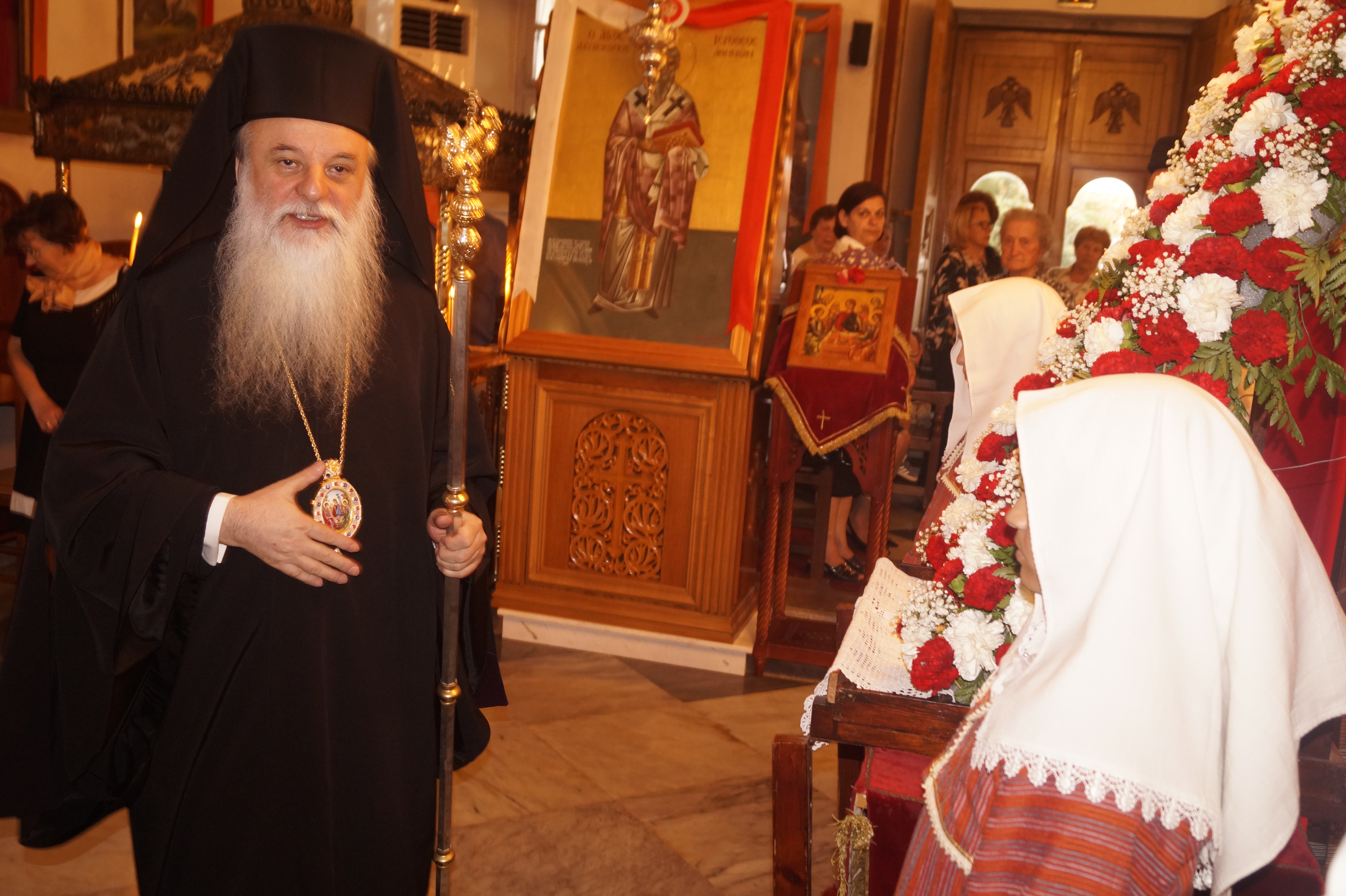 Προσκεκλημένος του σεβασμιότατου Μητροπολίτου Λήμνου και Αγίου Ευστρατίου κ.κ. Ιερόθεου ο σεβασμιότατος Μητροπολίτης Αυλώνος κ.κ. Χριστόδουλος, ο οποίος προεξήρχε του πανηγυρικού εσπερινού και της αρχιερατικής Θείας Λειτουργίας.