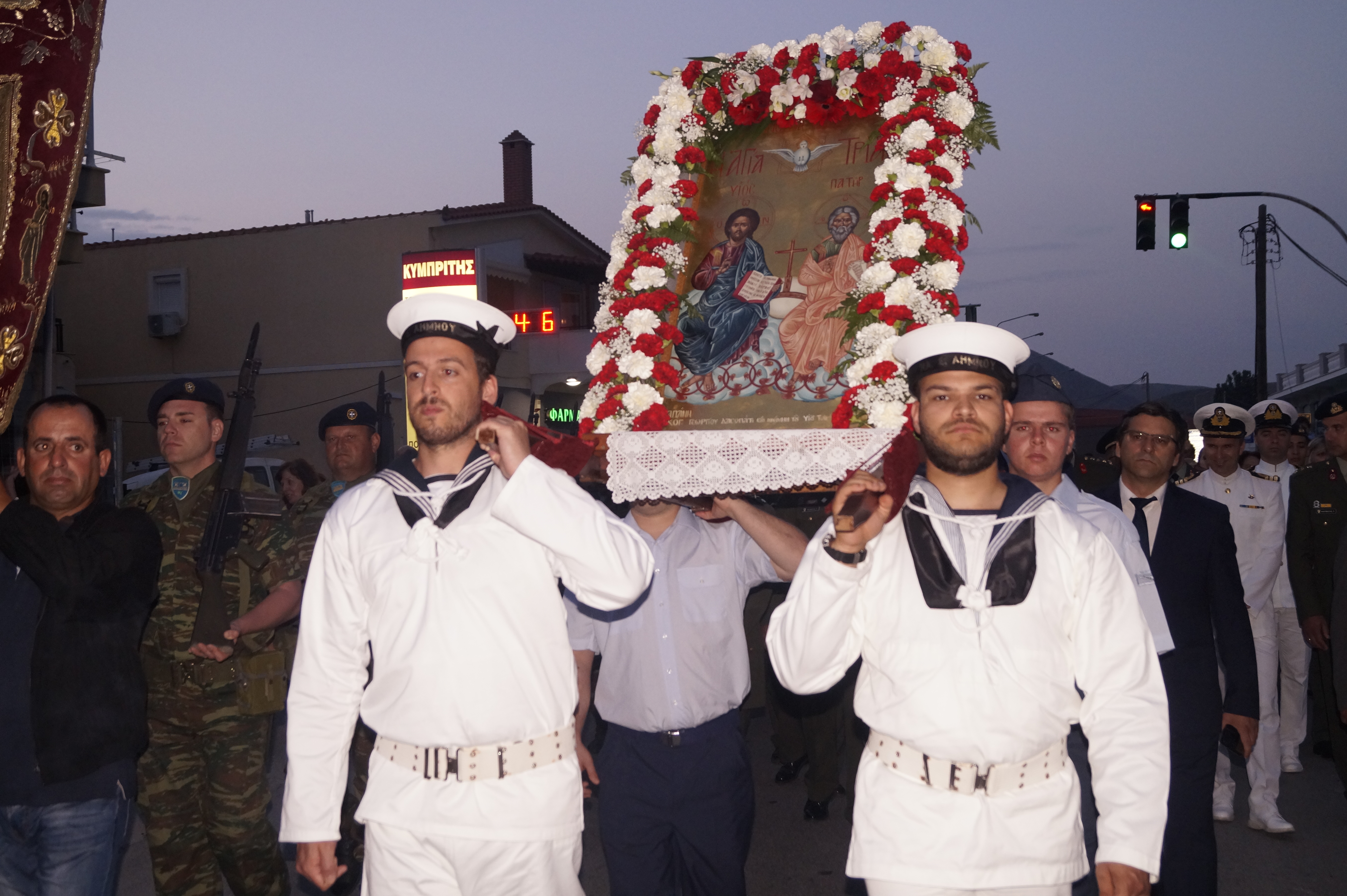 Ο στρατιωτικός διοικητής Ταξίαρχος κος Ρουμάνης Γρηγόριος , οι διοικητές των μονάδων ναυτικού, αεροπορίας, αστυνομίας , λιμενικού, πυροσβεστικής και αντιπροσωπίες.