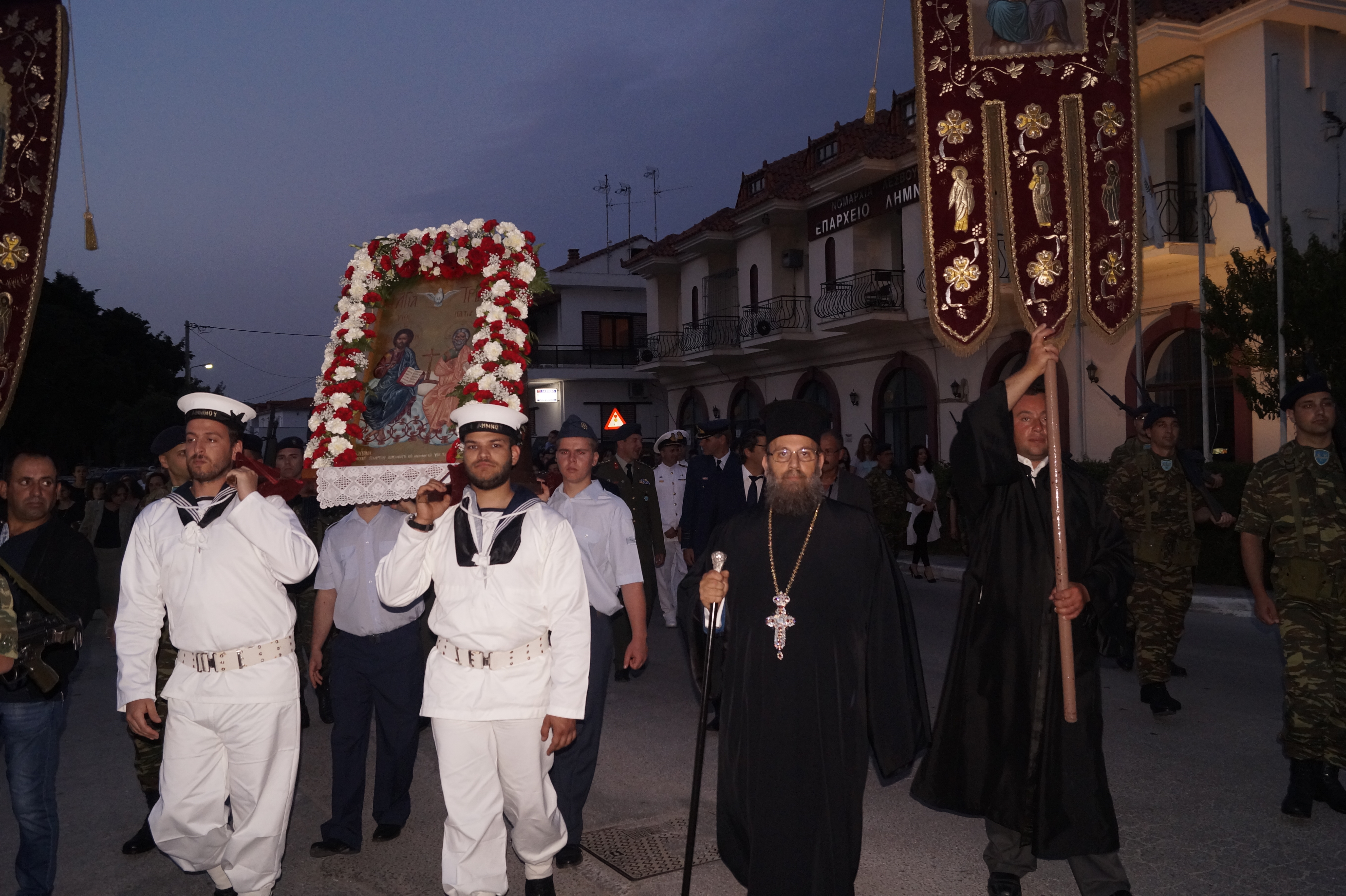 Στις ιεράς ακολουθίες συμμετείχαν οι πολιτικές και στρατιωτικές αρχές και πλήθος του πιστού λαού της Λήμνου.