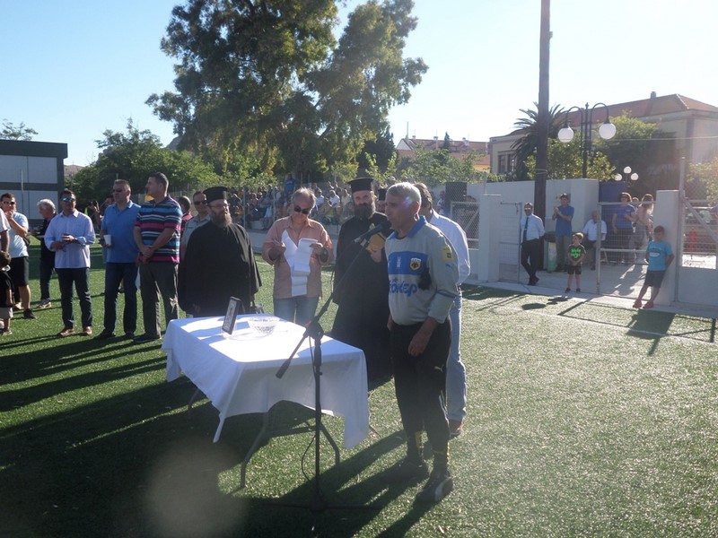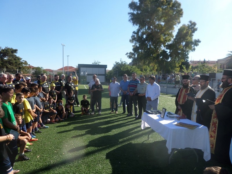 Τα εγκαίνια τελέστηκαν από τον Πρωτοπρεσβύτερο, πατέρα Αντώνιο Γιουρνάρα, ο οποίος μετέφερε το μήνυμα του Σεβασμιώτατου Μητροπολίτη κ. κ. Ιεροθέου, παρουσία του Δημάρχου Λήμνου κ. Δημήτρη Μαρινάκη, του στρατιωτικού διοικητή Λήμνου Ταξίαρχου Γρηγόριου Ρουμάνη, του Διοικητή της Πυροσβεστικής Υπηρεσίας Λήμνου, Παναγιώτη Μπιμπούδη, του Διοικητή του Α.Τ. Μύρινας Σωκράτη Κρομμυδέλλη, του Λιμενάρχη Μύρινας Γεώργιου Αρβανίτη, του πρώην Δημάρχου κ. Δημήτριου Βουλγαράκη, των Αντιδημάρχων κ. Νικόλαου Μοσχάκη, κ. Γεώργιου Σακαρίκου και κ. Ιωάννη Ποντίκα, του Προέδρου του ΟΕΠΑ Δήμου Λήμνου κ. Νικόλαου Μαρινάκη, των παλαίμαχων ποδοσφαιριστών της ΑΕΚ, του Προέδρου της Ένωσης Φίλων της ΑΕΚ Λήμνου κ. Απόστολου Παπάμπαλη, μελών της Ένωσης Φίλων της ΑΕΚ Λήμνου και πλήθους παρευρισκόμενων.