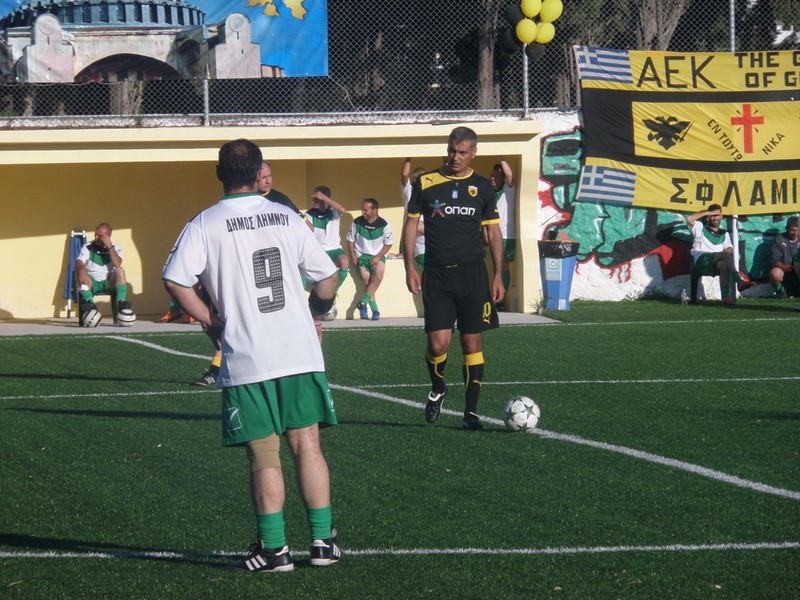 Μέσα στο κατάμεστο γήπεδο της Μύρινας, ακολούθησε φιλικός αγώνας μεταξύ των παλαίμαχων της ΑΕΚ και των παλαίμαχων του Δήμου Λήμνου, όπου το κοινό της Λήμνου είχε την ευκαιρία να παρακολουθήσει ένα παιχνίδι με τη συμμετοχή αθλητών που έγραψαν ιστορία στο ποδόσφαιρο. Οι δύο ομάδες ισοφάρησαν στο δεύτερο ημίχρονο, με τον αγώνα να κλείνει με σκορ 4-4, αφήνοντας πίσω όμορφες στιγμές για τον τοπικό αθλητισμό.