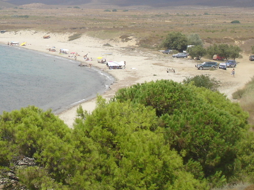 Κατά τους καλοκαιρινούς μήνες λειτουργεί και ένα beach bar. Στο τέλος της παραλίας, αριστερά, υπάρχει ένα πευκοδάσος, όπου μπορεί να κάνει κάποιος ελεύθερα κάμπινγκ, με σκηνές ή τροχόσπιτο. Οδηγώντας στο χωματόδρομο κατά μήκος της παραλίας, μετά το Κέρος, υπάρχει στα αριστερά η Ασπρολίμνη.