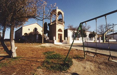 Η Φισίνη είναι ένα μικρό, σχεδόν εγκαταλειμμένο, χωριό, γεμάτο μουριές. Το όνομά της το πήρε από τους ισχυρούς ανέμους που φυσάνε στην περιοχή.Φεύγοντας από εκεί, κατευθυνόμαστε προς το λιμανάκι της Αγιάς. Αριστερά του βλέπουμε το εκκλησάκι του Αγίου Σώζοντα. Ο παραδοσιακός αυτός λατρευτικός χώρος διέθετε, πάνω ακριβώς από τη θάλασσα, πετρόκτιστα κελιά για τους προσκυνητές. Τώρα τα βλέπουμε εκεί εγκαταλειμμένα. Ο δρόμος μέχρι εκείνο το σημείο είναι ασφαλτοστρωμένος. Μπορείς να περπατήσει ή να οδηγήσει κανείς ένα 4Χ4 μέχρι την παρθένα και άγνωστη στους πολλούς παραλία του Αγ. Μάρνου. Αριστερά και δεξιά της υπάρχουν δεκάδες τζιτζιφιές και πάνω στο λόφο της απλώνεται μια σειρά από ανεμόμυλους. Στρίβουμε αριστερά, στην πινακίδα που γράφει Αγία Σοφία.