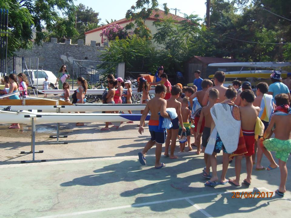 Παιδιά ηλικίας 5 ετών και πάνω, κάθε Δευτέρα, Τετάρτη, Παρασκευή και Σάββατο, από τις 9.30 το πρωί ως τις 12 το μεσημέρι επιδίδονται σε θαλάσσια σπορ όπως το κανό, το καγιάκ, την κωπηλασία, το σαμπ, το κολύμπι και πολλά ακόμη.