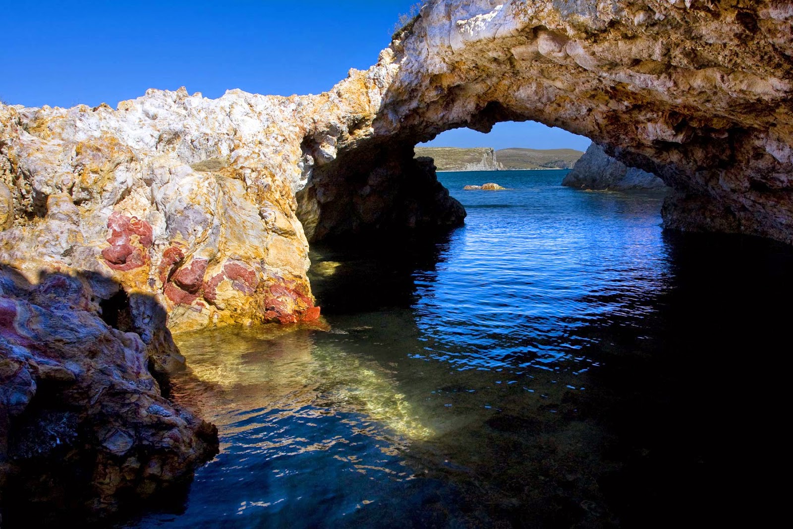 Στην ακτή των Καβειρίων βρίσκεται η σπηλιά του Φιλοκτήτη.