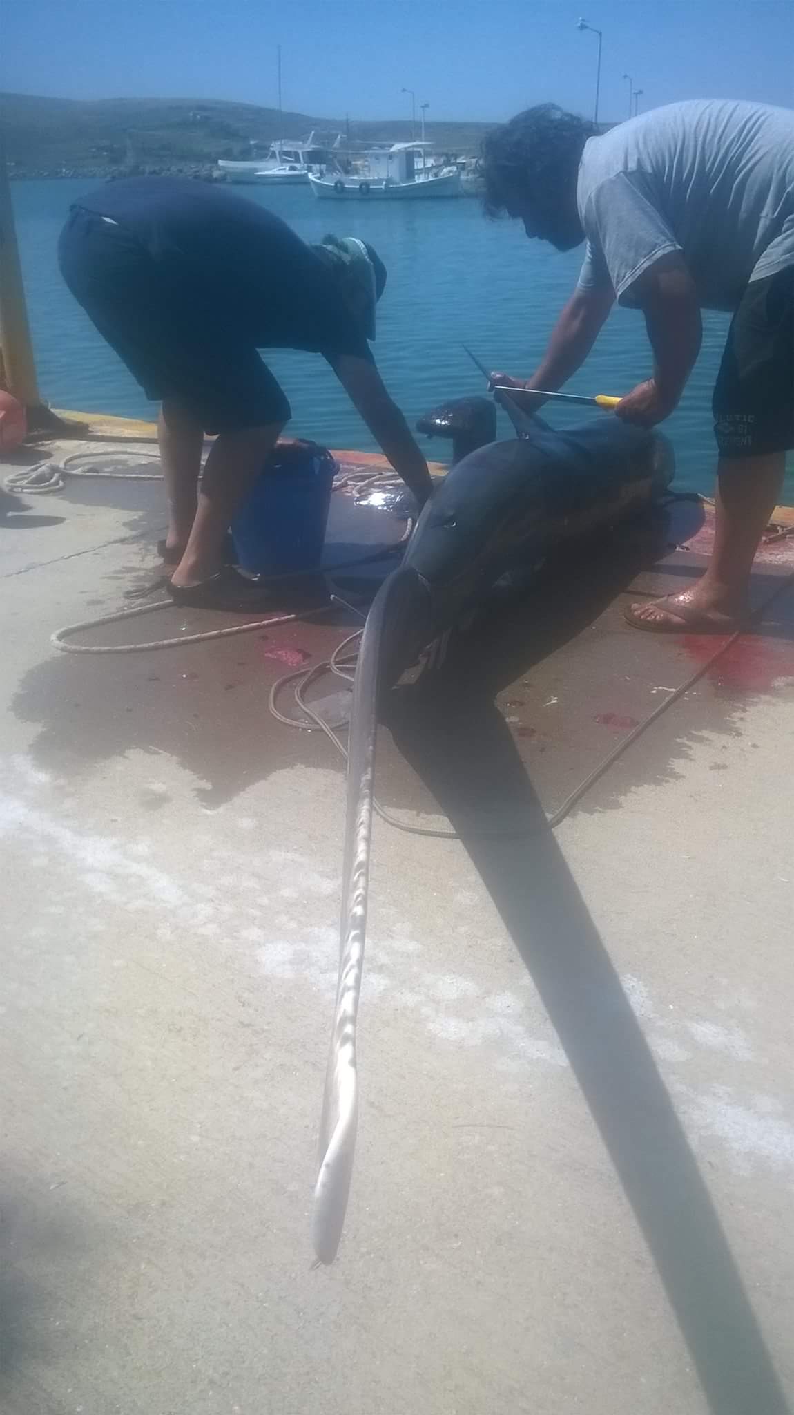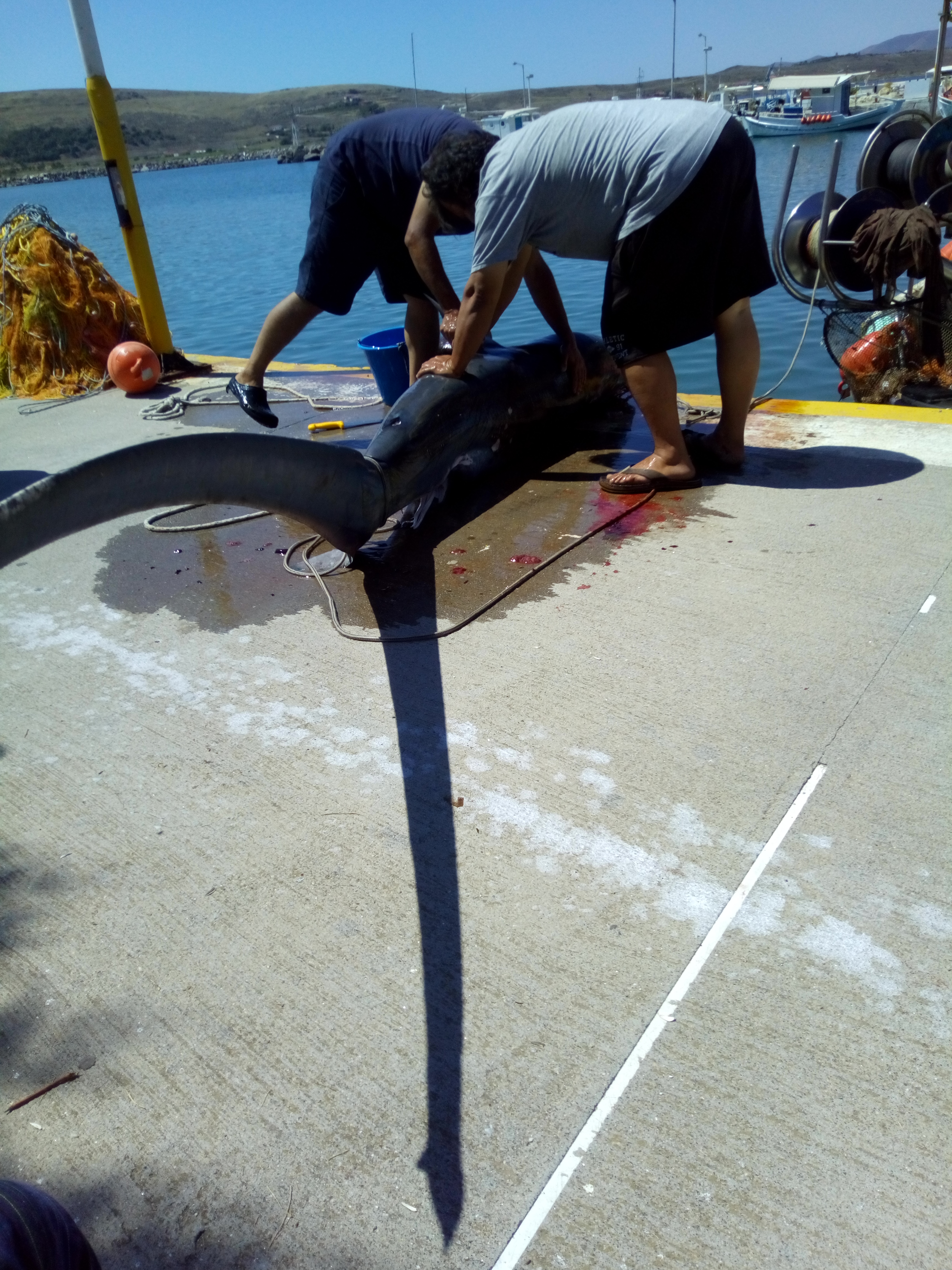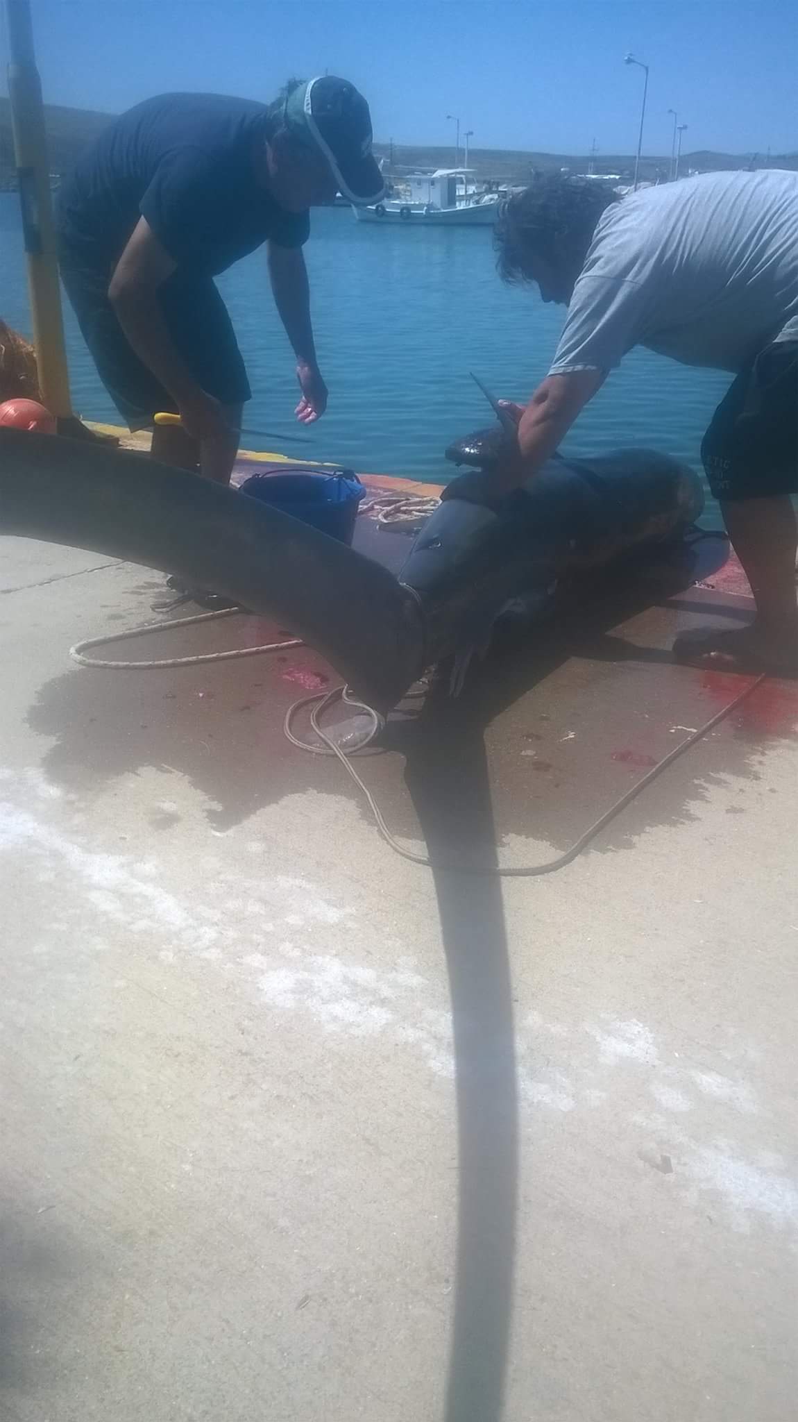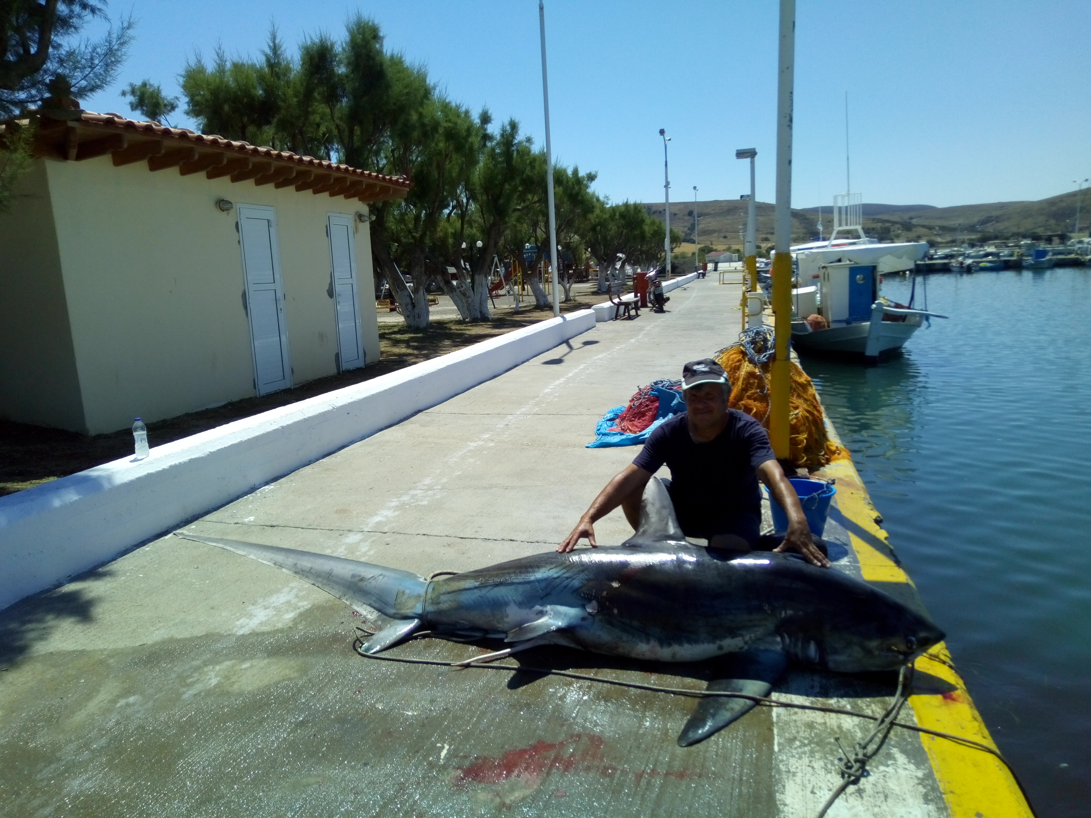 Συγκεκριμένα, το μεγάλο ψάρι αλιεύτηκε από τους ψαράδες Αντρέα Τσίκοβα και τον αδερφό του, Βαγγέλη, οι οποίοι ψάρευαν με το καΐκι τους "Καπετάν Αντρέας" στην περιοχή της Αγίας Ειρήνης.