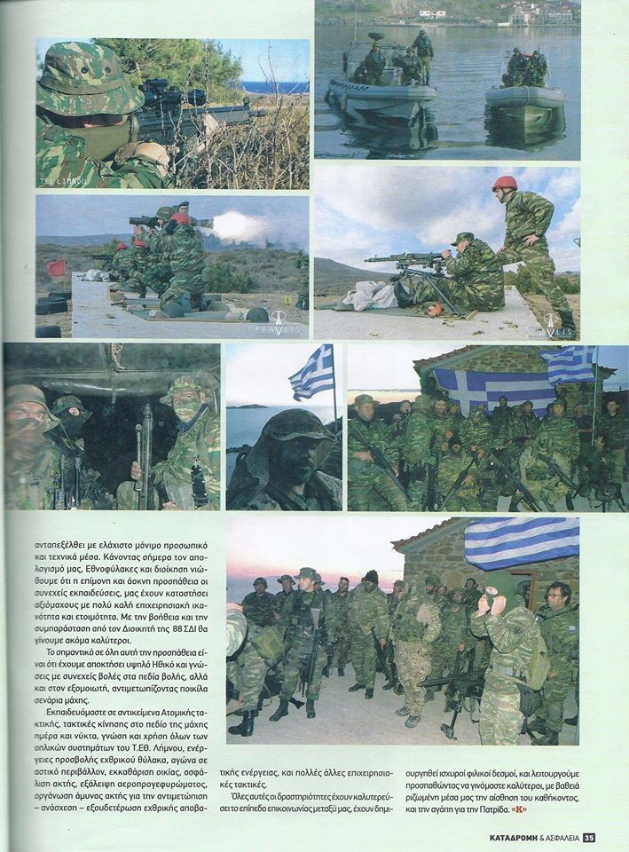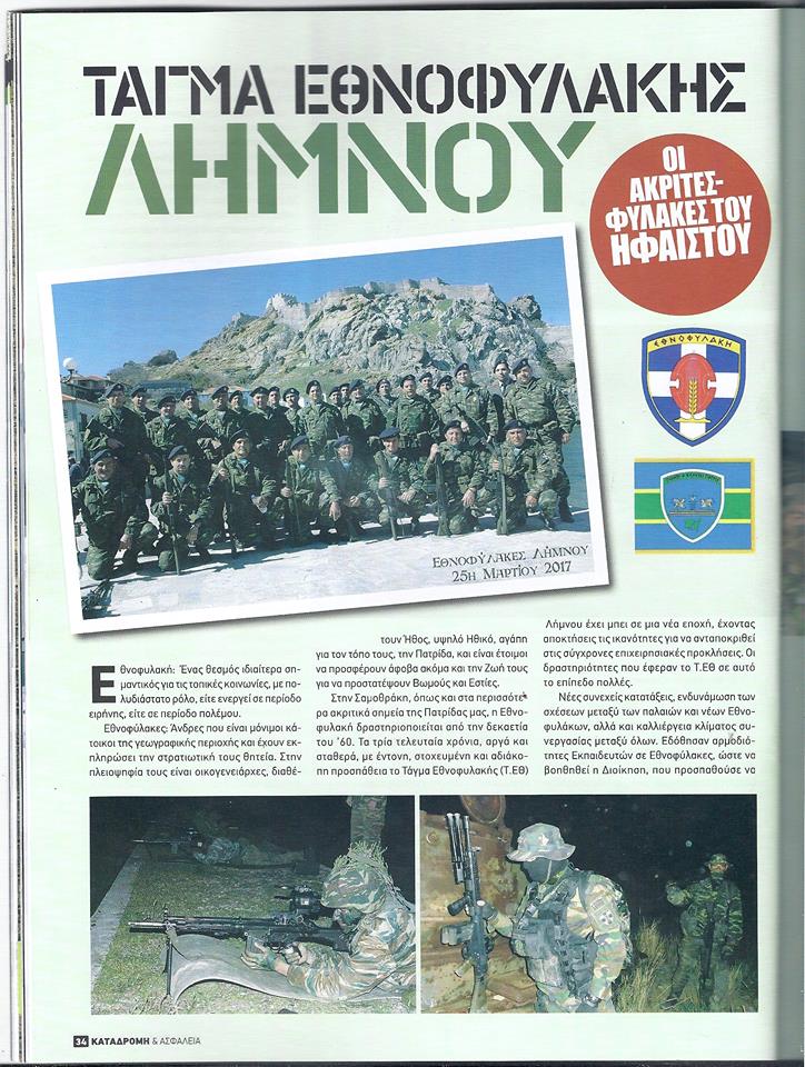«Ένα μεγάλο ευχαριστώ στον κο Πατσουλε Δημήτρη που επιμελήθηκε της παρουσίασης. Αυτή η παρουσία μας στο καταξιωμένο περιοδικό, κατέστη δυνατή μετά και από την ουσιαστική βοήθεια του συναδέλφου Εθνοφύλακα -καταδρομέα αλεξιπτωτιστή Στράτου Τ. Το κείμενο της παρουσίασης επιμελήθηκε ο επίσης Εθνοφύλακας Δημήτρης Α», αναφέρουν οι Εθνοφύλακες Λήμνου στη σελίδα τους στο Facebook.