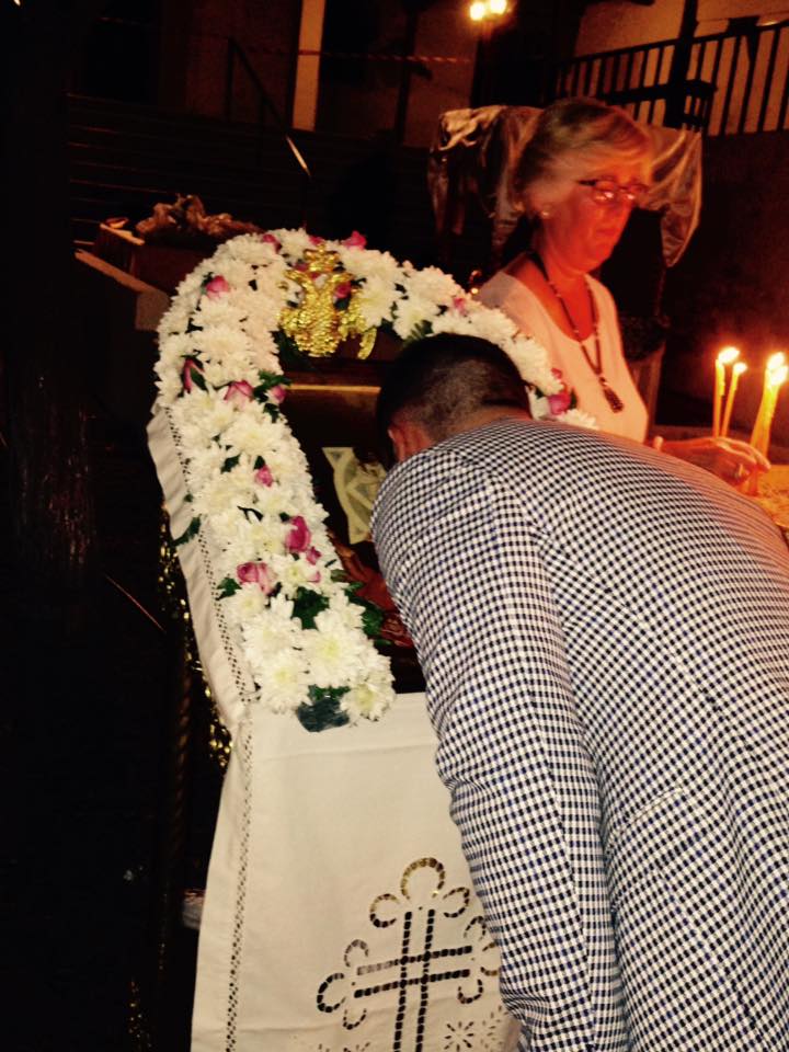Και φέτος, ο εσπερινός έγινε στον αύλειο χώρο του ναού, καθώς μετά το σεισμό της 24ης Μαΐου του 2014 και τις ζημιές που υπέστη έχει κριθεί ακατάλληλος.