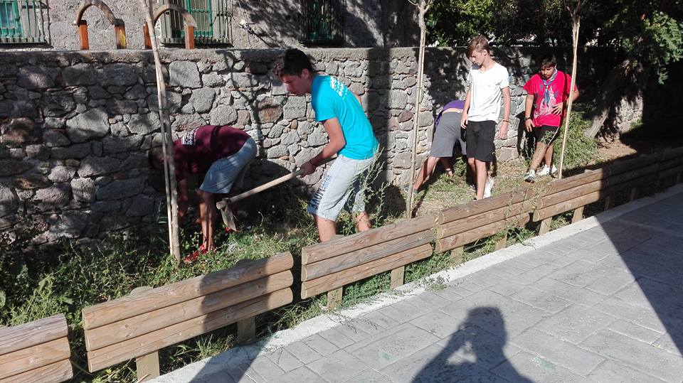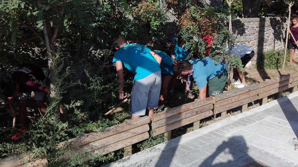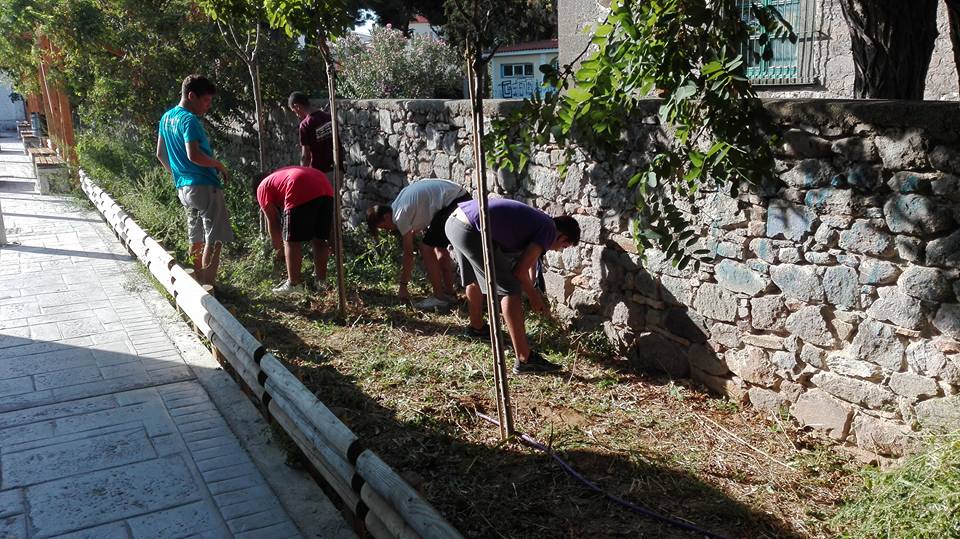 Έτσι οι επισκέπτες της Λήμνου προχώρησαν στον καθαρισμό χώρων πρασίνου στο κλειστό γυμναστήριο της Μύρινας όπου και έμεναν.