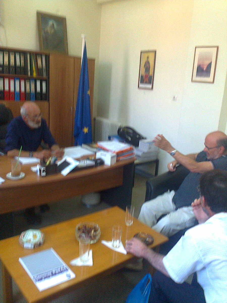 Το μεσημέρι της ίδιας ημέρας επισκέφθηκε το Δήμαρχο Λήμνου. Από τη συζήτηση αναδείχθηκε κι εδώ το σοβαρό πρόβλημα της έλλειψης μόνιμου προσωπικού (από τις 170 προβλεπόμενες θέσεις είναι καλυμμένες οι 120) ως αποτέλεσμα και της απαγόρευσης πρόσληψης μόνιμου προσωπικού από την κυβέρνηση. Λείπουν βασικές ειδικότητες για το Δήμο όπως εργάτες καθαριότητας, υδραυλικοί, ηλεκτρολόγοι, σιδεράδες. Επίσης για τη λειτουργία των εγκαταστάσεων των βιολογικών καθαρισμών του Δήμου χρειάζονται ένας χημικός μηχανικός, 2 μηχανολόγοι – ηλεκτρολόγοι και 2 υπάλληλοι βοηθητικό προσωπικό.