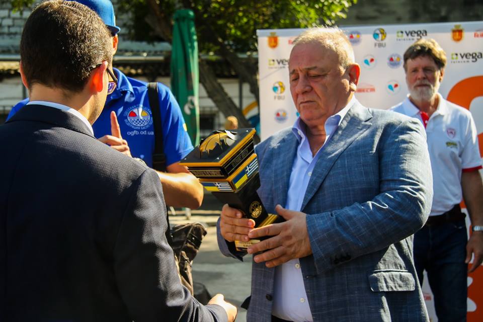 Ο Δήμαρχος της Οδησσού, Γ. Τρουχάνωφ, και ο Πρόεδρος του Ιδρύματος Μπούμπουρα, και Πρόεδρος πλέον της λέσχης «ΜΠΙΠΑ - Οδησσός», Παντελής Μπούμπουρας, χαιρέτισαν τις ομάδες.