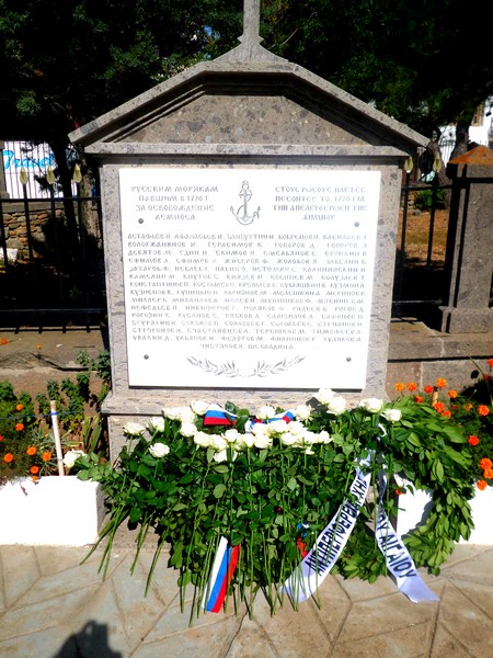Ακολούθησε επίσκεψη στον Ι. Ν. Ευαγγελισμού της Θεοτόκου και εναπόθεση λουλουδιών στο Μνημείο ρώσων ναυτών.