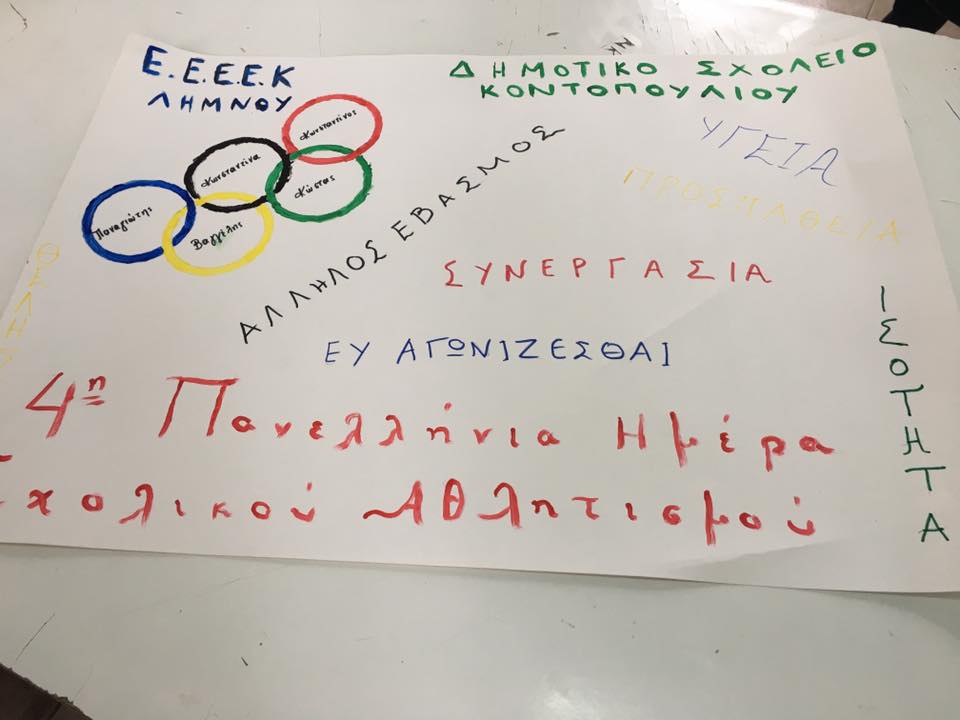 Σε σχετικό μήνυμα που εξέδωσε το ΕΕΕΕΚ Λήμνου αναφέρεται: «Ευχαριστούμε τον διευθυντή του Δημοτικού Σχολείου Κοντοπουλίου, κ. Βλάττα Άγγελο, για τη συνεργασία, όλους τους συναδέλφους, τους παράγοντες του Α.Ο. Ηφαιστία Κοντοπουλίου, που ήταν πάλι δίπλα μας και συνέδραμαν ενεργά και, φυσικά, τους γυμναστές μας, τον κ. Πλούμπη Ευθύμιο και Γεωργίου Χρήστο, που έδωσαν σήμερα όλη τους την ψυχή για την απρόσκοπτη διοργάνωση όλων των αθλητικών δραστηριοτήτων!». «Ήταν μια υπέροχη ημέρα Αθλητισμού, Συνεργασίας και κοινωνικής μαθητείας!», καταλήγει το μήνυμα.