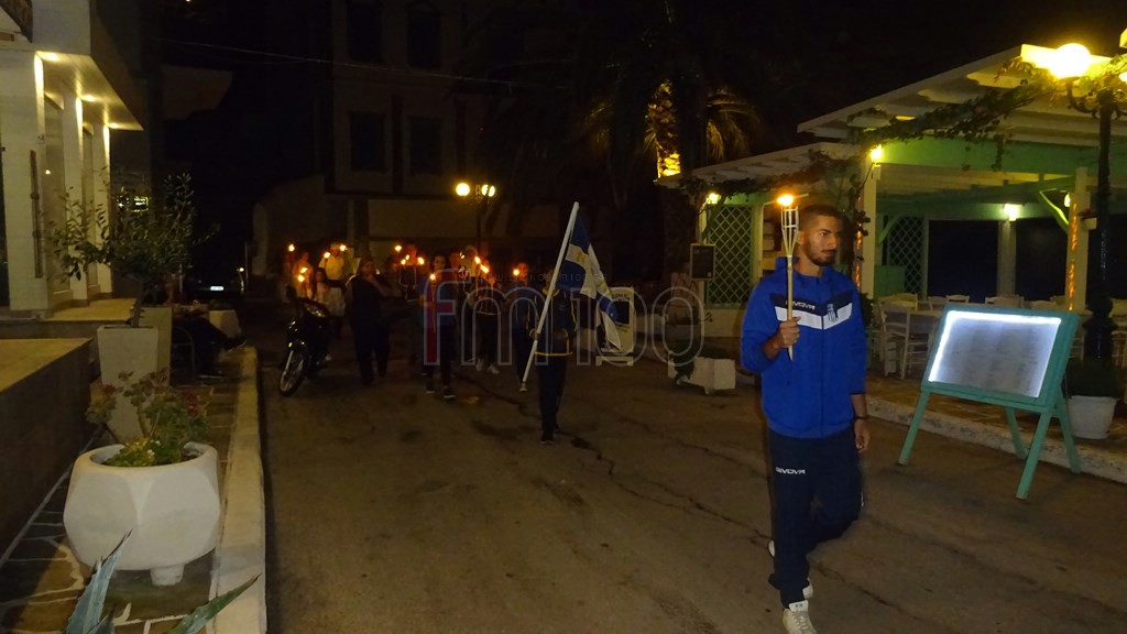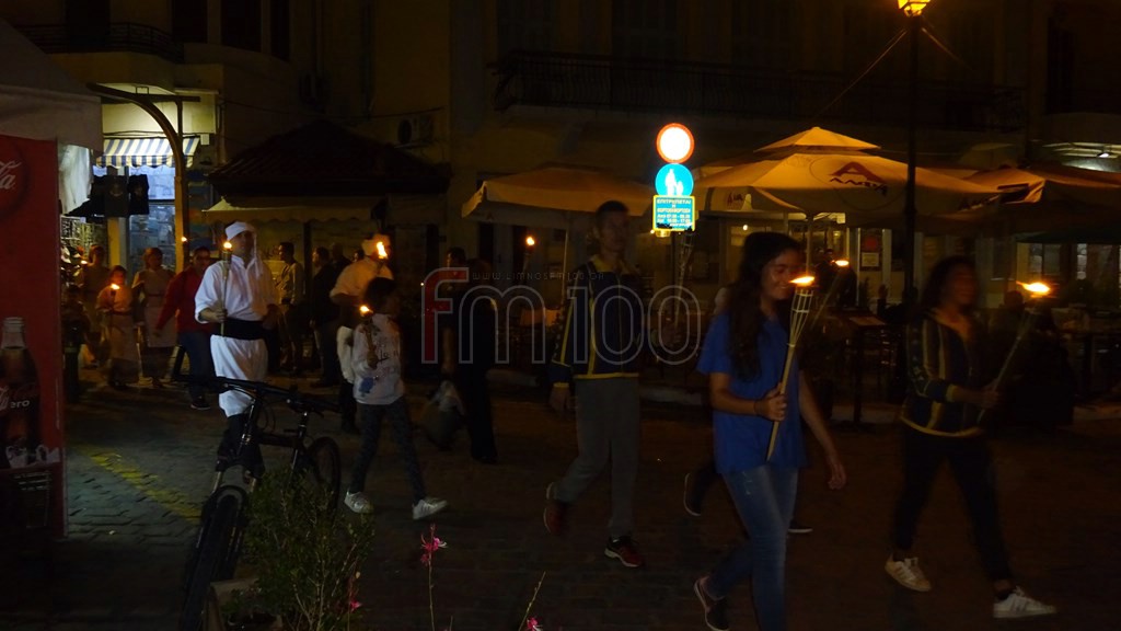 Οι εκδηλώσεις ξεκίνησαν με λαμπαδηφορία σε κεντρικούς δρόμους της Μύρινας με πρώτο λαμπαδηφόρο τον Λημνιό Παγκόσμιο Πρωταθλητή Κωπηλασίας, Χάρη Ντινενή.