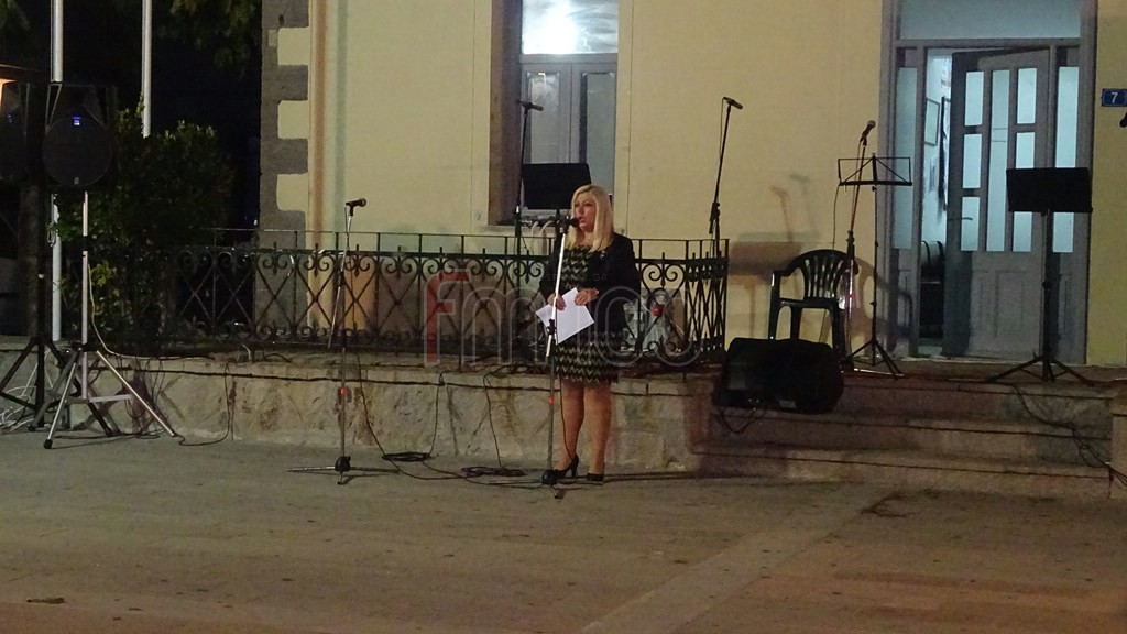 Μετά την λήξη της λαμπαδηφορίας, οι εορταστικές εκδηλώσεις συνεχίστηκαν μπροστά από το Δημαρχείο, όπου η φιλόλογος, Ιουλία Λυγδά, έκανε μια σύντομη αναφορά στο χρονικό της απελευθέρωσης με ανάλογες βιντεοπροβολές. Χαιρετισμό απηύθυνε ο πατήρ Δημήτριος Αμπανάβας, ενώ την παρουσίαση της εκδήλωσης έκανε η Πρόεδρος της Δημοτικής Κοινότητας Μύρινας κ. Αδαμαντία Γαροφαλλίδου Παπούλκα.