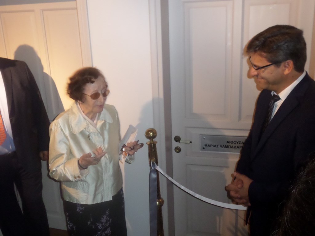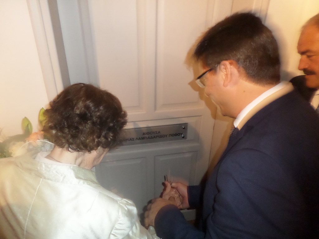 Θεωρούμε ότι η ονοματοδοσία της αίθουσας με το όνομα της δωρήτριας, αποτελεί ελάχιστη και σύμφωνη με το κοινό αίσθημα, απόφαση αναγνώρισης της πολύτιμης δωρεάς της.»