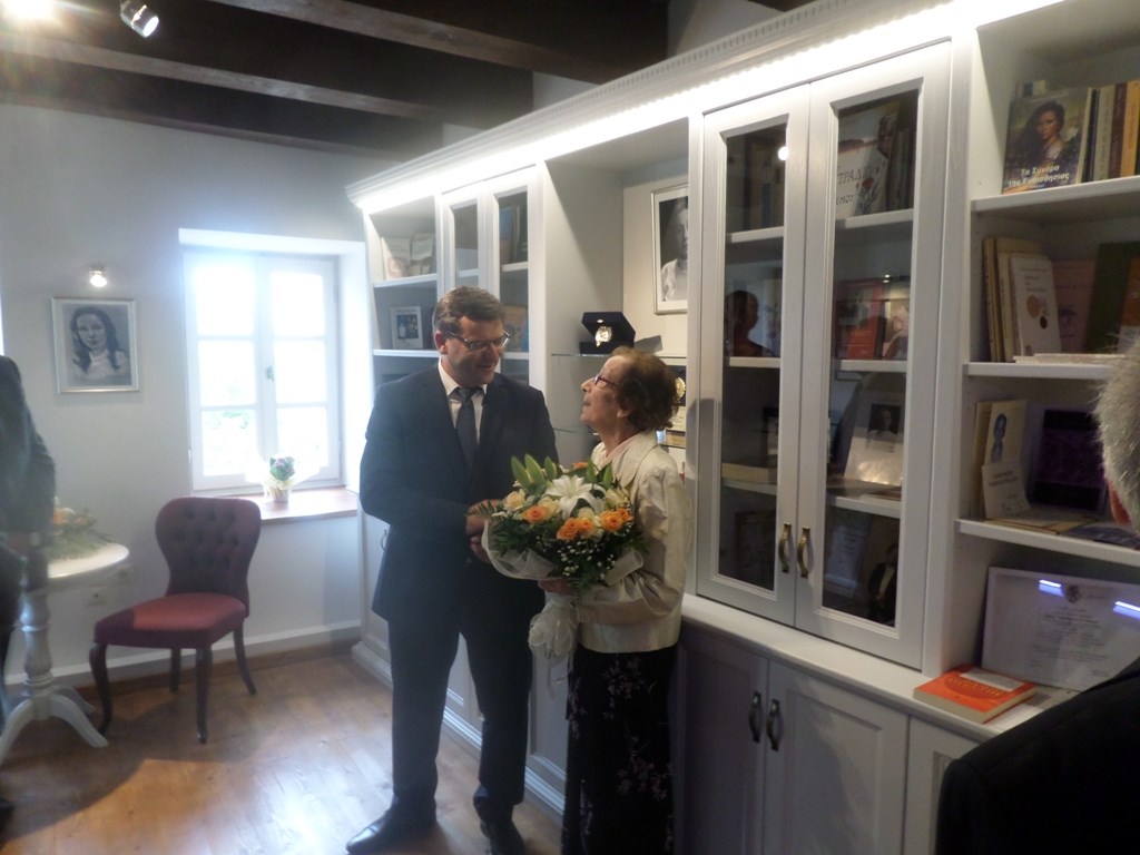 Ο Δήμαρχος Λήμνου ευχαρίστησε όλους όσοι συνέβαλαν για να γίνει πραγματικότητα η αίθουσα, ενώ προανήγγειλε ότι θα ακολουθήσουν και άλλες ενέργειες σε συνεργασία με την κ. Λαμπαδαρίδου και της προσέφερε το μετάλλιο με το έμβλημα της πόλης της Μύρινας, καθώς και έναν μικρό αμφορέα.