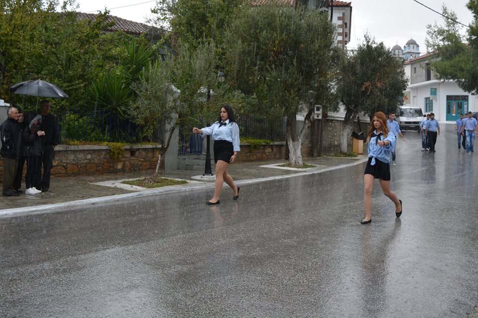 Οι μαθητές, βέβαια, δεν πτοήθηκαν, αντιθέτως παρέλασαν μπροστά στα υπερήφανα βλέμματα των… τολμηρών παρευρισκομένων.