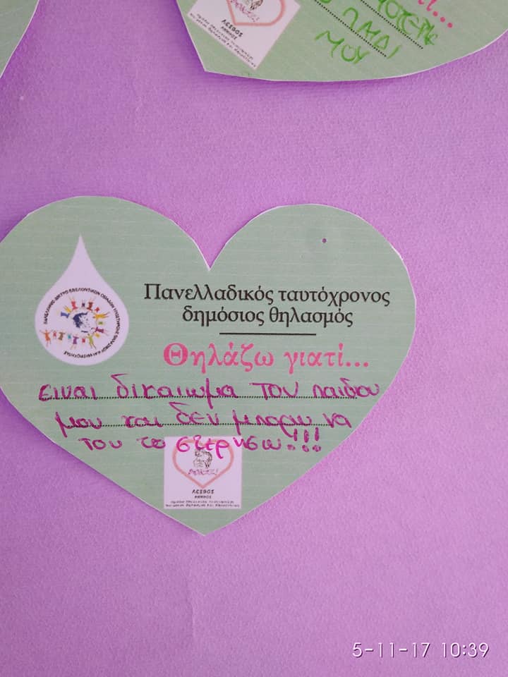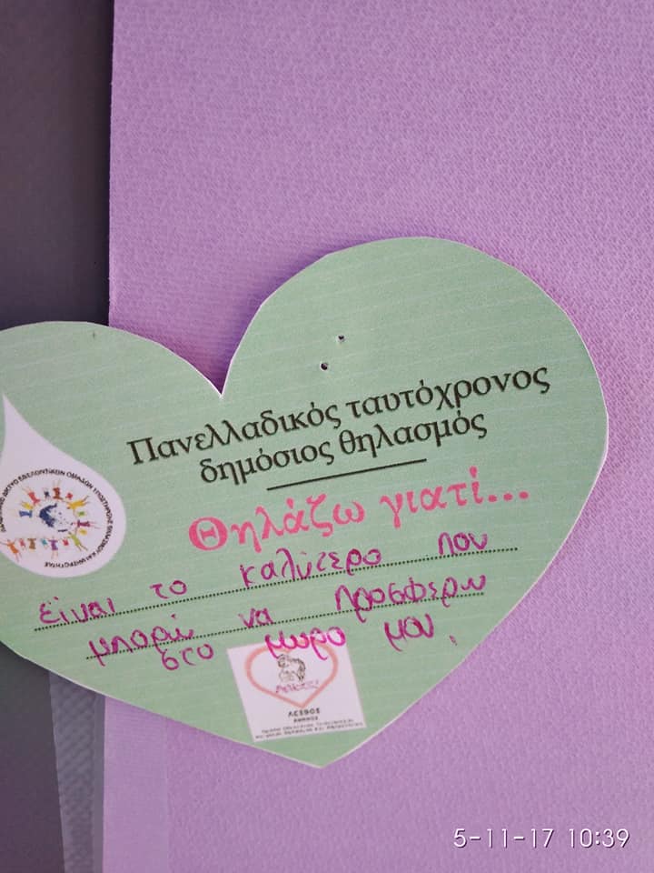 Σε αυτή τη γιορτή συμμετείχε για τρίτη χρονιά και η Λήμνος, με υπεύθυνη στη διοργάνωση την Νατάσσα Μαυρομουστάκη, με σκοπό την προώθηση, υποστήριξη, ενημέρωση, ενθάρρυνση και ανταλλαγή πληροφοριών, σχετικά με τον μητρικό θηλασμό, όχι μόνο ως λέξεις σε ένα φυλλάδιο ή σε μια ομιλία, αλλά εμπράκτως ως εικόνα και παρουσία «από μητέρα προς μητέρα».