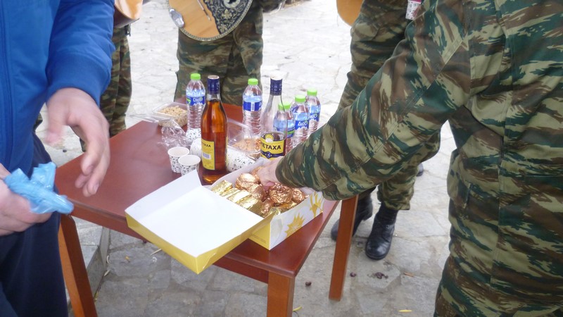Φυσικά ο Πρόεδρος του χωριού κ. Πατρώνιας τους κέρασε κονιάκ αλλά και γλυκές λιχουδιές.