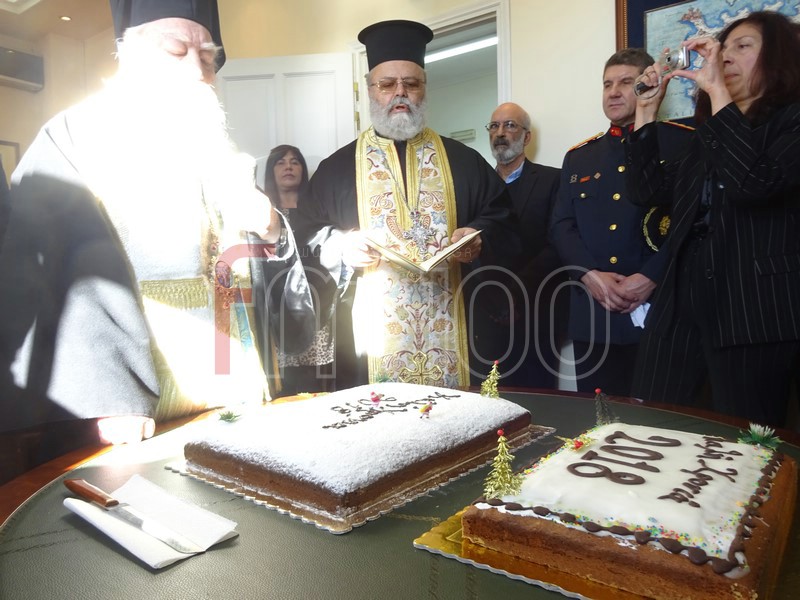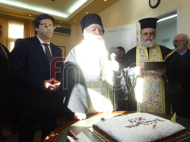 Μητροπολίτης και Δήμαρχος αντάλλαξαν ευχές, ενώ αμέσως μετά ακολούθησε η κοπή της βασιλόπιτας.