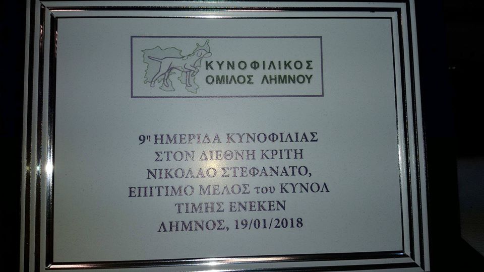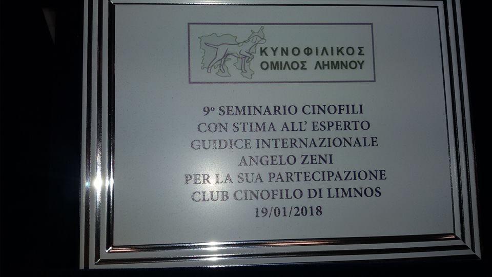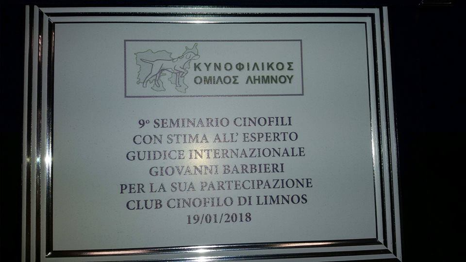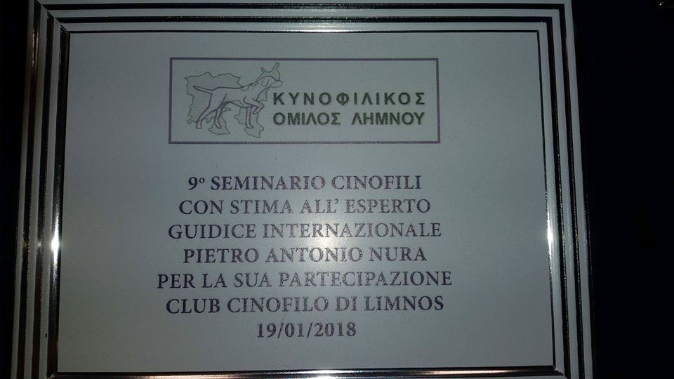 «Το ΔΣ του Κυνοφιλικού Ομίλου Λήμνου ευχαριστεί τους καλεσμένους της εκδήλωσης της κοπής της Πρωτοχρονιάτικης Βασιλόπιτάς του, Giovanni Barbieri, Pietro Antonio Nurra, Angelo Zeni, Enzo Persi και Νίκο Στεφανάτο για τις πολύ ενδιαφέρουσες κυνοφιλικές τους παρουσιάσεις.