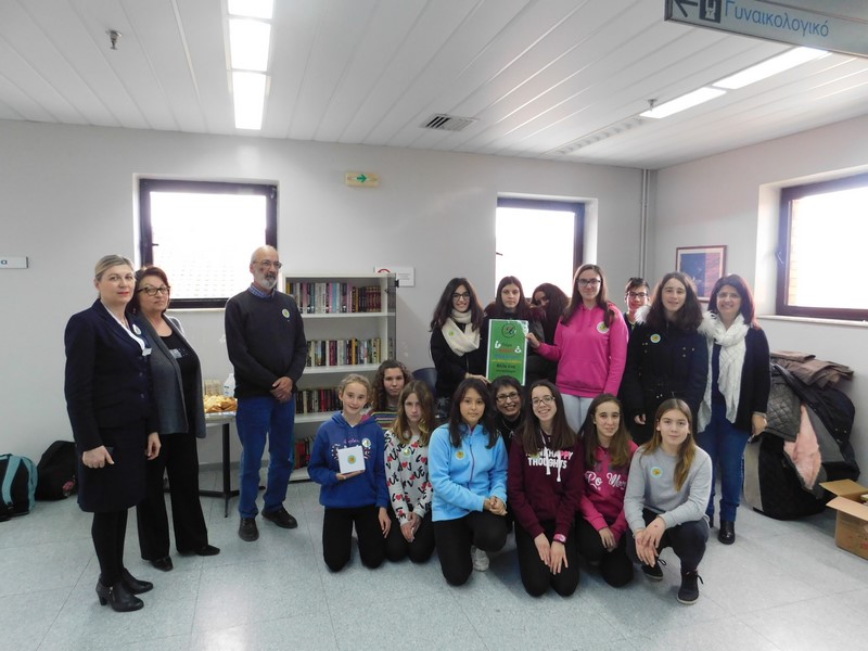 Το μεσημέρι της Παρασκευής 16 Φεβρουαρίου, σε συνεργασία με το Γενικό Νοσοκομείο Λήμνου μία βιβλιοθήκη γεμάτη βιβλία για όλες τις ηλικίες και όλα τα ενδιαφέροντα στήθηκε στον χώρο αναμονής του 2ου ορόφου της Παθολογικής Κλινικής. Τα παιδικά βιβλία βρήκαν τη θέση τους σε ράφια του Παιδιατρικού Τμήματος του Νοσοκομείου. Τα μέλη της ομάδας, αφού συγκέντρωσαν και κατηγοριοποίησαν τα βιβλία, φιλοτέχνησαν σελιδοδείκτες και μοιράστηκαν την ιδέα τους και τη δράση τους με πολλή αγάπη.