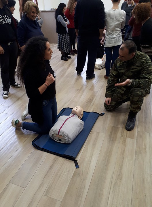 Κατά τη διάρκεια του σεμιναρίου που ξεκίνησε στις 12.00 και ολοκληρώθηκε στις 14.00, έγινε επίδειξη ΚΑΡΠΑ η οποία συνδικάστηκε με πρακτική εξάσκηση.