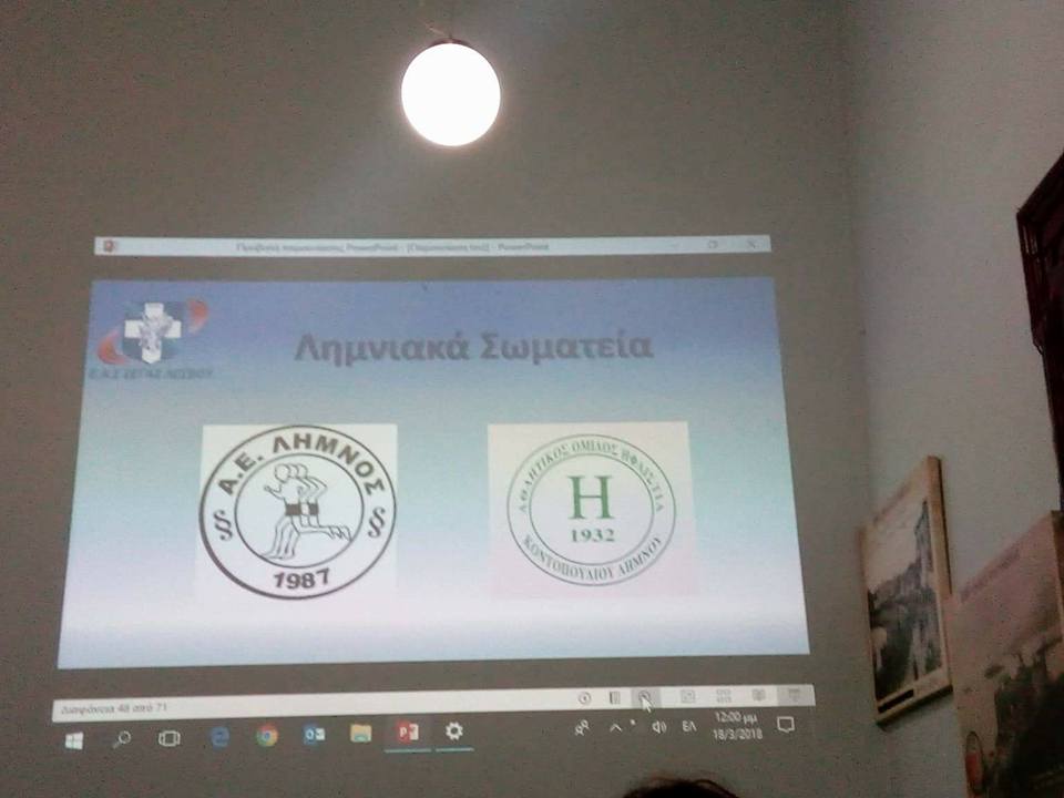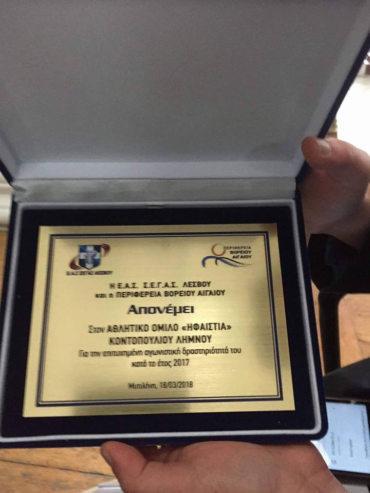 Υπενθυμίζεται ότι λόγω των δυσμενών καιρικών συνθηκών δεν κατάφεραν να παραστούν στην εκδήλωση τα αθλητικά σωματεία στίβου της Λήμνου. Τον ΑΟ Ηφαιστία Κοντοπουλίου εκρποσώπησαν οι Φώτω Κόνσολα και Γιώργος Χρήστου.