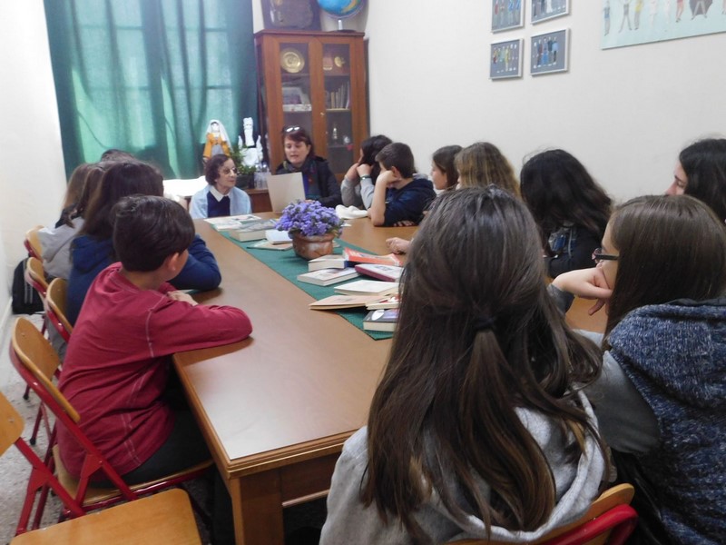 Αφού χαιρέτισε το σύνολο των μαθητών και εκπαιδευτικών του σχολείου κατόπιν είχε την ευκαιρία να συζητήσει με την ομάδα των 19 μαθητών οι οποίοι είχαν διαβάσει τους προηγούμενους μήνες αντιπροσωπευτικά της έργα και να απαντήσει στα ερωτήματά τους.
