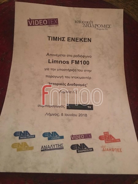 Πριν από την προβολή του ντοκιμαντέρ, τιμήθηκαν με ειδικά βραβεία όλοι όσοι συνέβαλαν στη δημιουργία της παραγωγής, μεταξύ των οποίων και ο Limnos FM 100 που βραβεύθηκε για την αρωγή του σε επίπεδο προβολής και ενημέρωσης.
