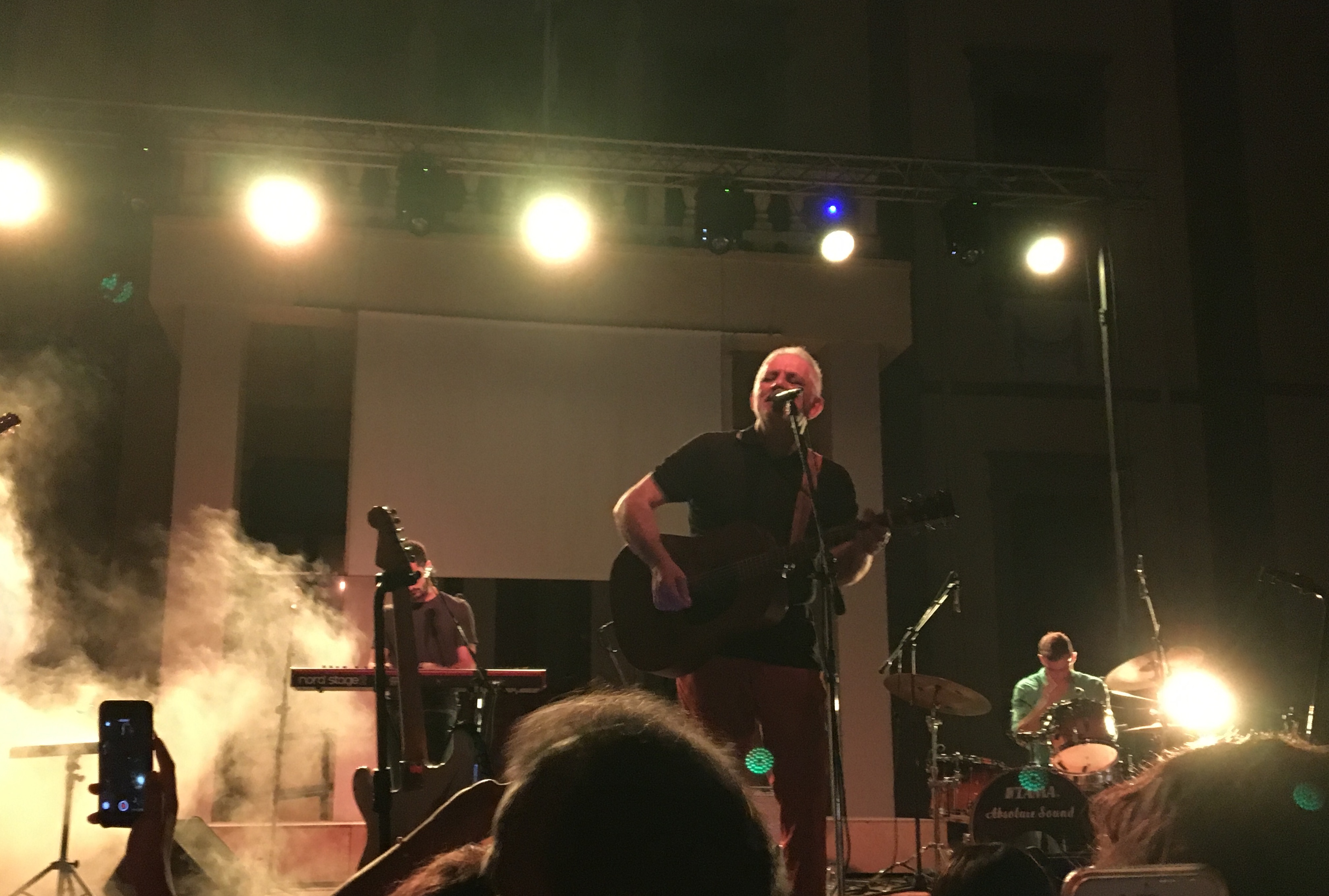 Ο αγαπημένος συνθέτης και τραγουδιστής, με την πλούσια δισκογραφία, που με άνεση καλύπτει αποκλειστικά μια συναυλία, έμεινε για περισσότερο από δύο ώρες επί σκηνής και συχνά μοιραζόταν με το κοινό σκέψεις, στοχασμούς και προσωπικά βιώματα του παρελθόντος.