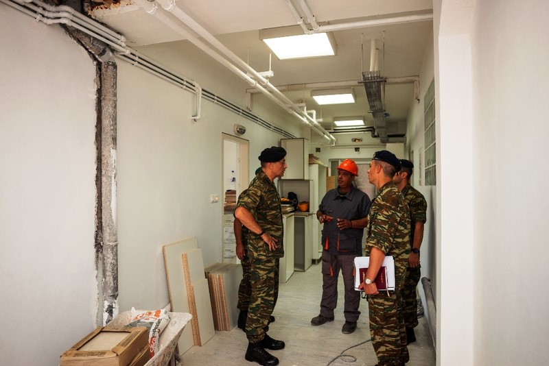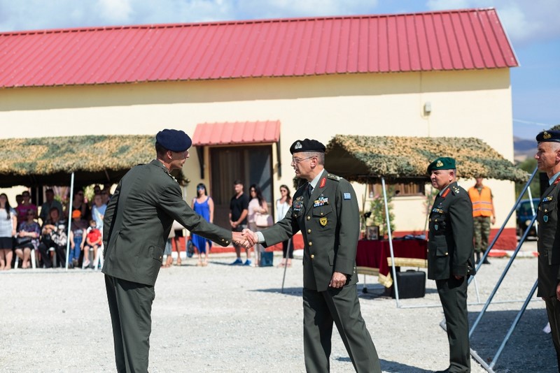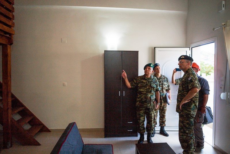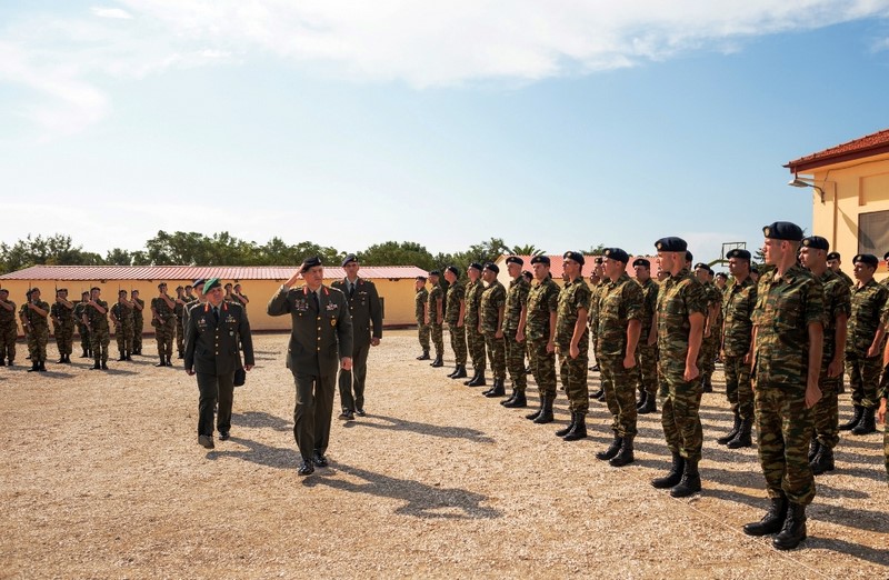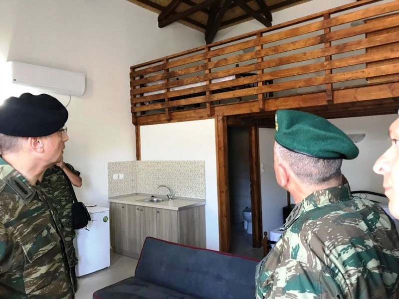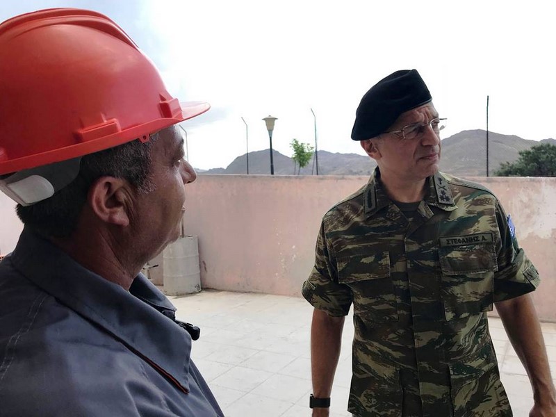 Ο Αρχηγός κατά την επίσκεψή του παρέστη στην τελετή ορκωμοσίας των Οπλιτών Θητείας της 2018 Δ΄ ΕΣΣΟ, στο Στρατόπεδο «ΥΠΙΛΑΡΧΟΥ ΔΗΜΗΤΡΙΟΥ ΚΑΡΔΑΜΗΛΑ» και στη συνέχεια ενημερώθηκε για την πρόοδο εργασιών, των υπό κατασκευή ξενώνων και στρατιωτικών οικιών Επαγγελματιών Οπλιτών (ΣΟΕΠΟΠ) στη Μύρινα.