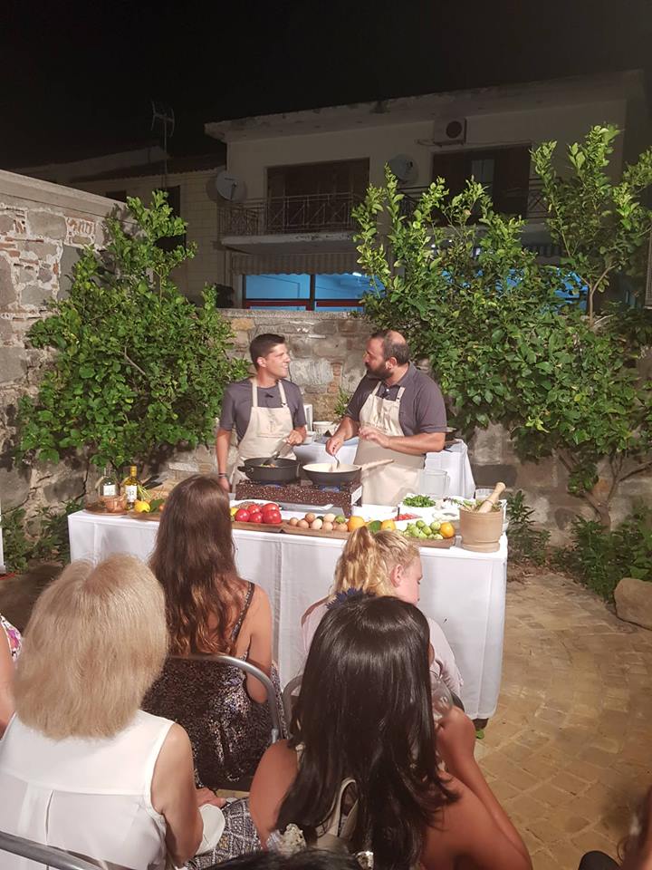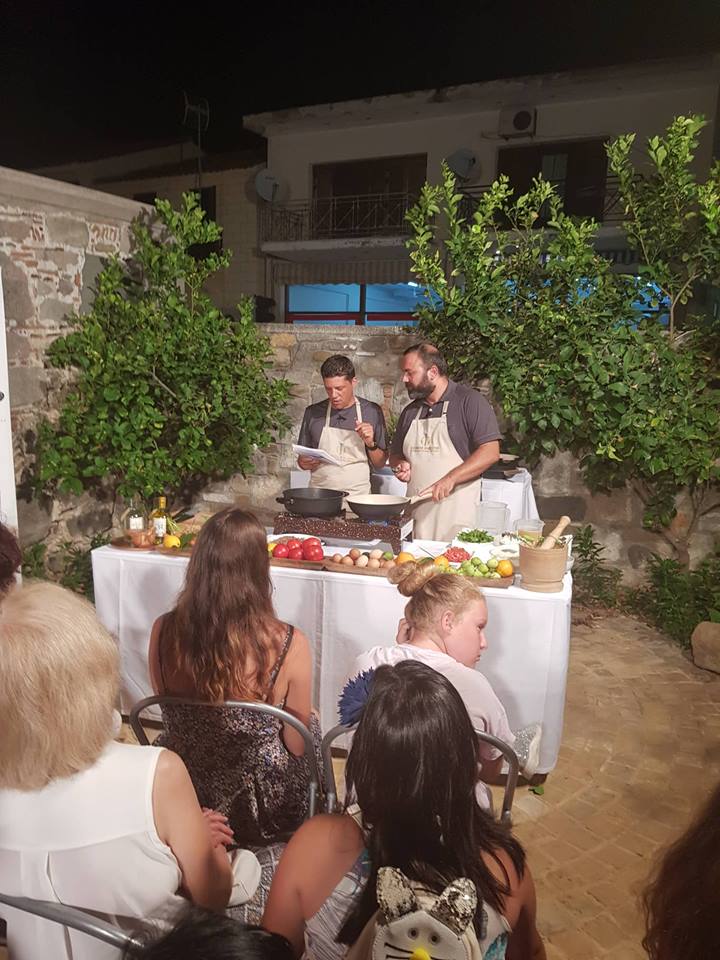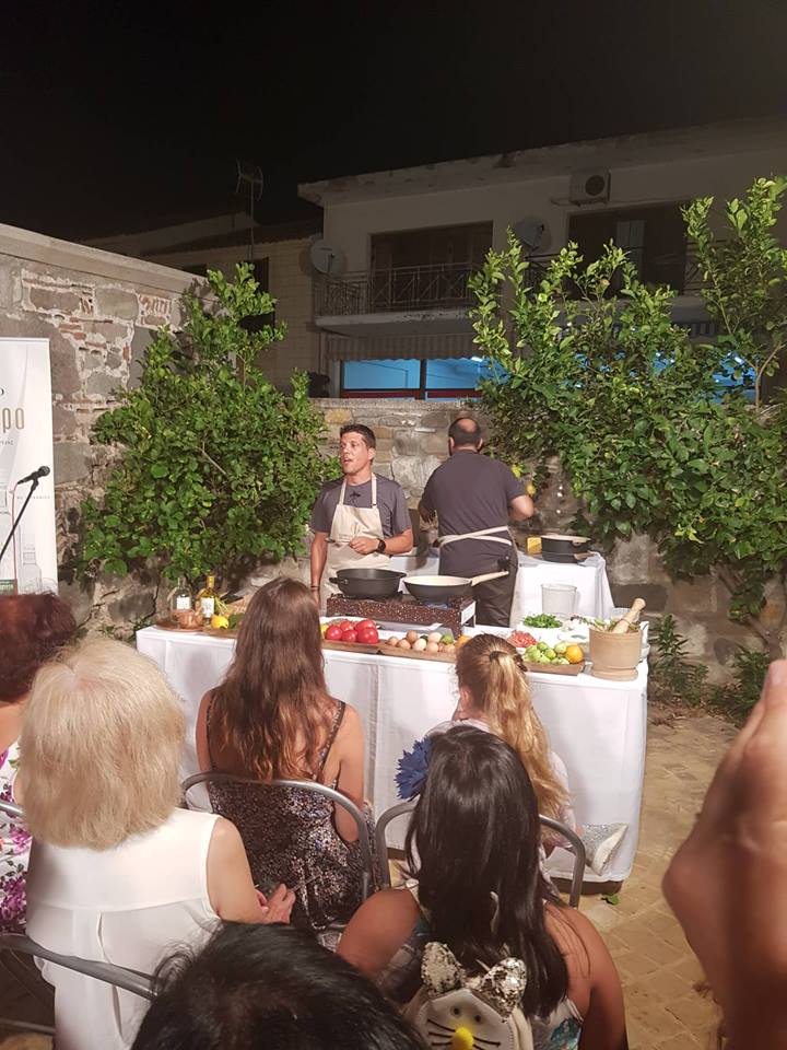 Εχθές Σάββατο, στο φεστιβάλ συμμετείχαν και δύο γνωστοί σεφ ο Αλέξανδρος Παπανδρέου και ο Δημήτρης Λαγός, οι οποίοι μαγείρεψαν live στο κοινό συνταγές εμπνευσμένες από τα τοπικά προϊόντα του νησιού.