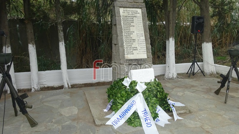 Το πρωί της Κυριακής (25/11) τελέστηκε επίσημη δοξολογία στον Ιερό Ναό Αγίου Παντελεήμονα στο Ανδρώνι και στη συνέχεια ακολούθησε επιμνημόσυνη δέηση και κατάθεση στεφάνων στο μνημείο των φονευθέντων κατά τη γερμανική κατοχή, στα Ρηχά Νερά.