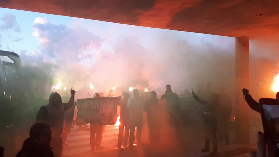 Οι οπαδοί της ομάδας αποθέωσαν τους παίκτες τόσο κατά την άφιξή τους στο αεροδρόμιο όσο και καθ’ όλη τη διάρκεια της μεταφοράς τους στο ξενοδοχείο κορνάροντας παρατεταμένα!