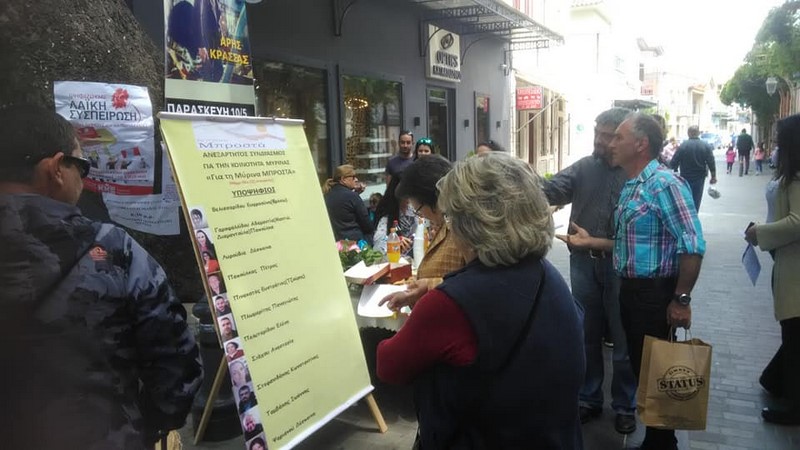 Μέσα σ ένα ευχάριστο κλίμα, «πλαισιωμένο» από την υπέροχη φωνή της συνυποψήφιας μας κας Αναστασίας Σιάχου, κεράσματα που πρόσφεραν οι κυρίες του συνδυασμού και συζήτηση γύρω από την διαδικασία των εκλογών, είχαμε την ευκαιρία να επικοινωνήσουμε με τον Μυριναίο πολίτη, ζητώντας μεταξύ των άλλων και την εμπιστοσύνη και στήριξη του στο συνδυασμό μας .