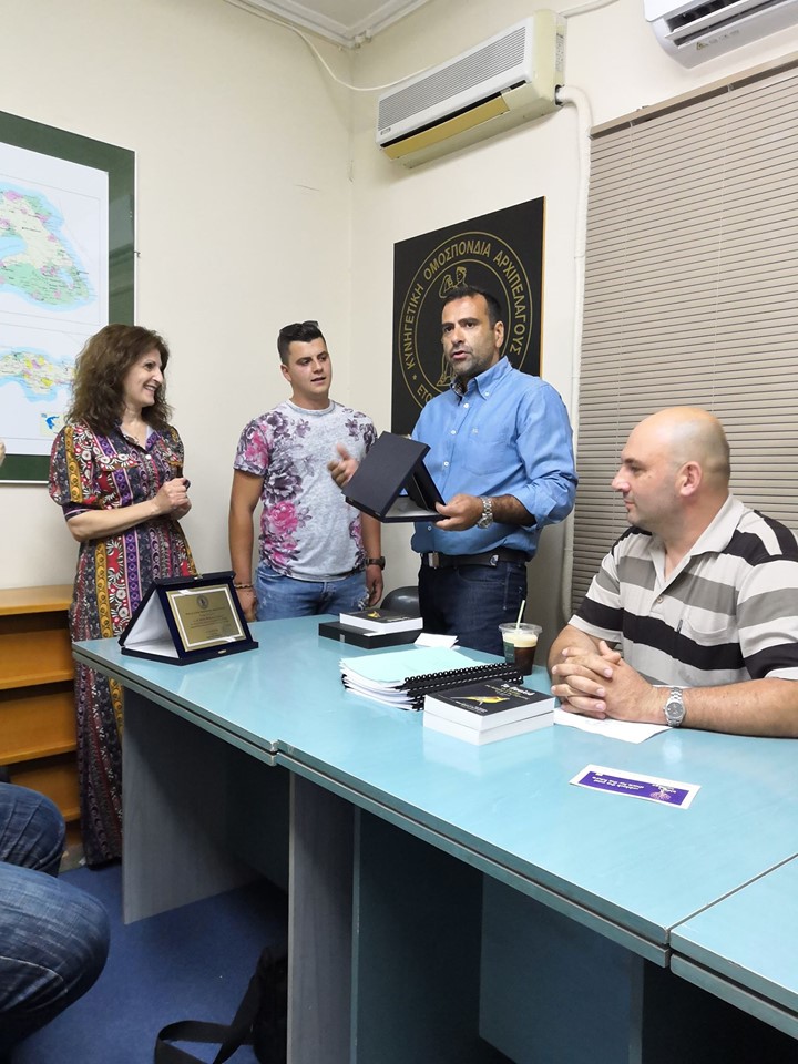Το βραβείο της Ομοσπονδίας για το ΕΠΑΛ Μύρινας παρέδωσε ο πρώην πρύτανης του Μετσόβειου Πολυτεχνείου και νυν πρύτανης του Πανεπιστημίου Δυτικής Αττικής, καθηγητής Κώστας Μουτζούρης, το οποίο παρέλαβαν οι υπεύθυνοι καθηγητές του project Σοφία Τριανταφύλλου και Μιχάλης Περιστεράκης.