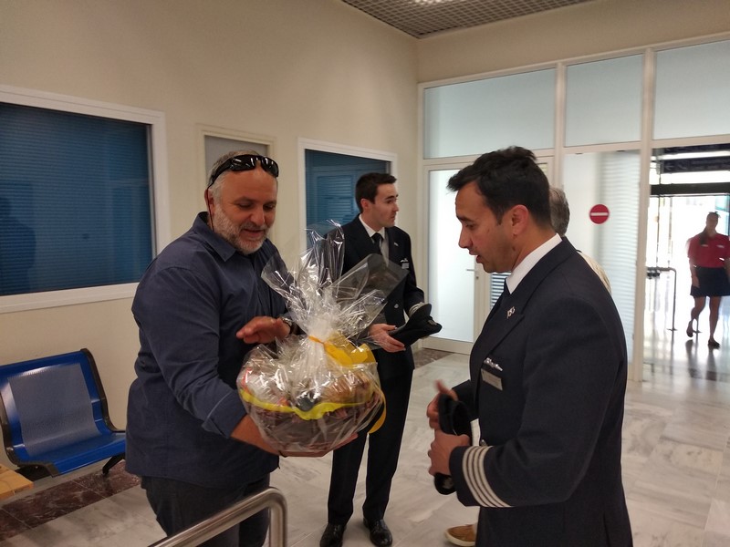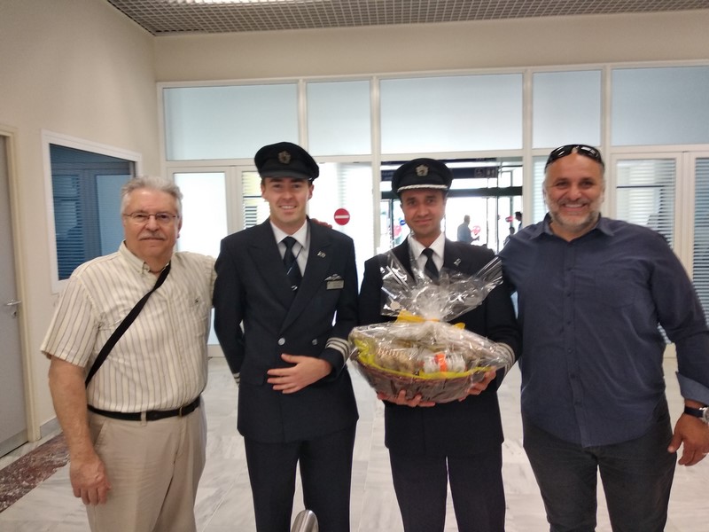 Ο πρόεδρος της ΑΜΚΕ Λήμνος Τουριστική κ. Σφενδύλης Δημήτρης και τα μέλη Ψάρρας Χρυσόστομος, Κατενίδης Κώστας και Μάρκου Ζαφειρώ που βρέθηκαν στο αεροδρόμιο πρόσφεραν παραδοσιακά γλυκά και δώρα στους επισκέπτες και τα πληρώματα των αεροσκαφών και τους ευχήθηκαν καλή διαμονή.
