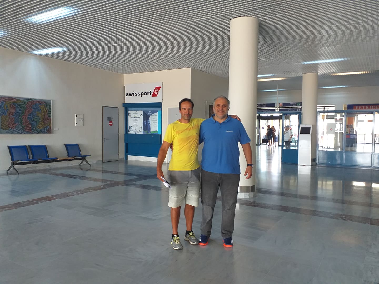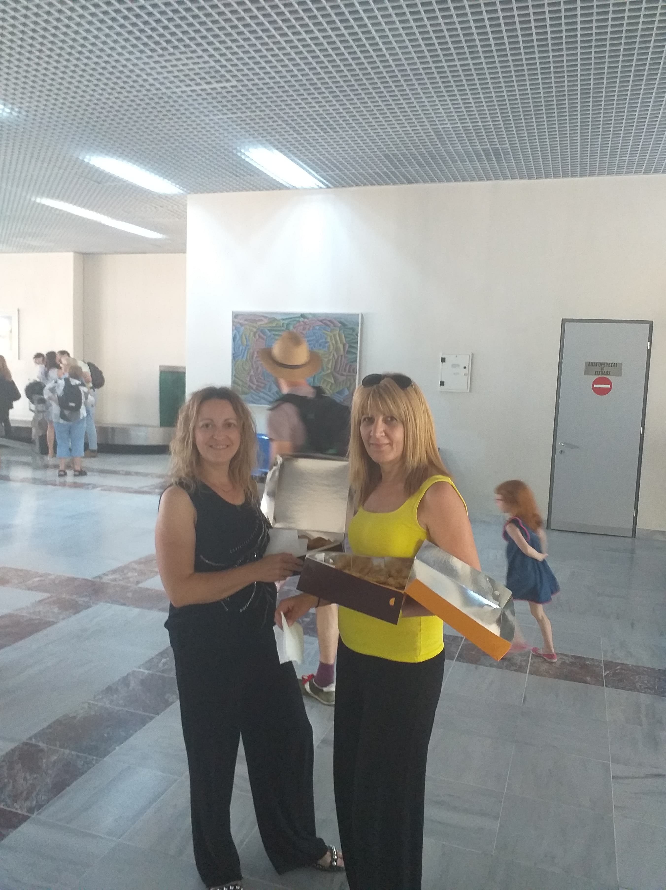 Ο πρόεδρος της ΑΜΚΕ κ. Σφενδύλης Δημήτρης και το μέλος κ.Μάρκου Ζαφειρώ καλωσόρισαν τους επιβάτες της πτήσεων και τους προσέφεραν τοπικά κεράσματα.