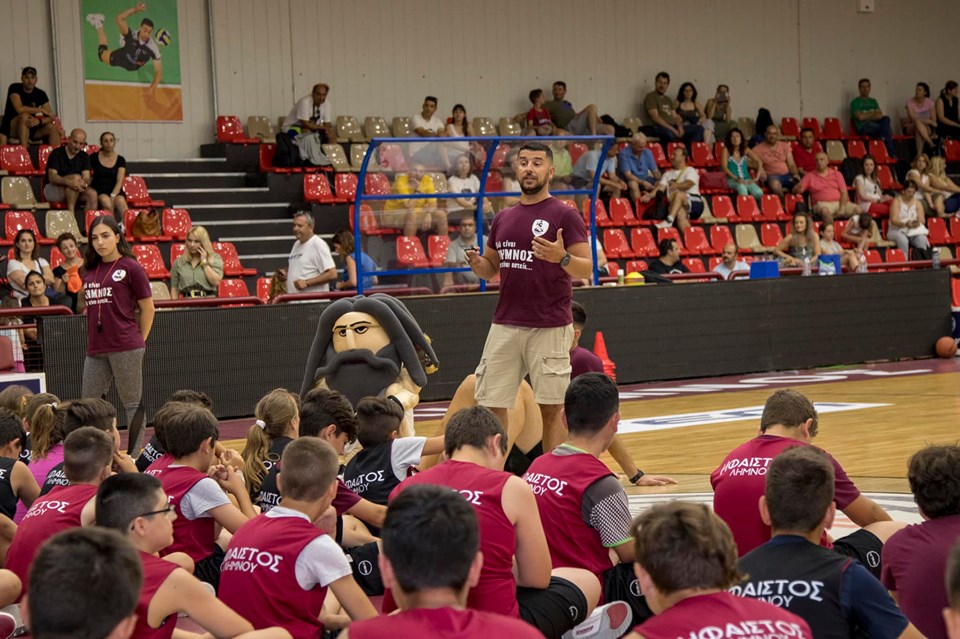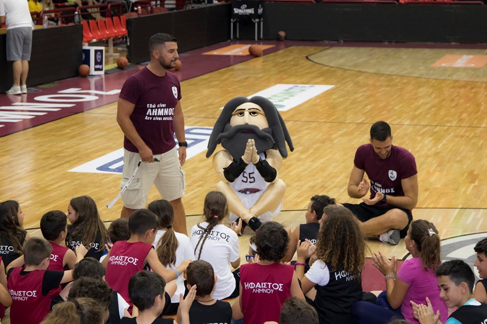 Οι 200 νεαροί αθλητές με τους προπονητές τους Ηλία Μάριο Οικονόμου και Δημήτρη Μίαρη, υποδέχτηκαν τον Θανάση Μολυβδα και τον Γιώργο Διαμαντάκο μέσα σε αποθέωση και είχαν την ευκαιρία να περάσουν πολύ όμορφες στιγμές. Διαγωνισμοί, μπάσκετ και πολλά δώρα περιλάμβανε το πρόγραμμα για τη νέα γενιά του Ηφαίστου Λήμνου.