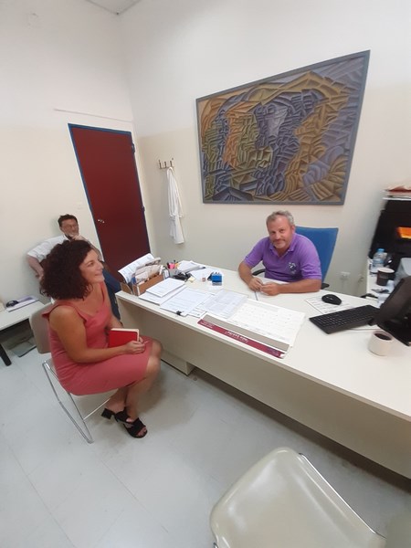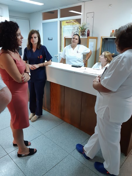 Στη συνέχεια η βουλευτής του ΚΚΕ έδωσε συνέντευξη σε τοπικό ραδιοφωνικό σταθμό και αργότερα επισκέφθηκε το νοσοκομείο του νησιού όπου μίλησε με εργαζόμενους του νοσοκομείου και με εκπροσώπους του Σωματείου Εργαζομένων στο Νοσοκομείο και της Ένωσης Ιατρών του Νοσοκομείου.