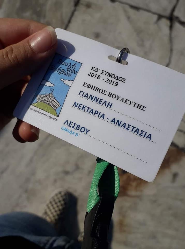 Η έφηβη βουλευτής του σχολείου ταξίδεψε στην Αθήνα για τις εργασίες της Συνόδου, όπου και διέμεινε για πέντε ημέρες (2-6 Σεπτεμβρίου 2019). Κατά τη διάρκεια των εργασιών, συμμετείχε στην ομάδα εργασίας και στα βιωματικά εργαστήρια για τα ανθρώπινα δικαιώματα και τις ευάλωτες κοινωνικές ομάδες, όπου και ανέπτυξε ζητήματα που αφορούν στους πρόσφυγες, στους τοξικομανείς κ.α.
