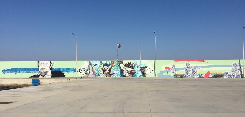 Οι τοιχογραφίες που κοσμούν πλέον το λιμανάκι του ακριτικού νησιού έχουν αναφορές στον Φιλοκτήτη, στα Αγιοπούλια και στον ποιητή Τάσο Λειβαδίτη που βρέθηκε εξόριστο στον Αϊ-Στράτη.