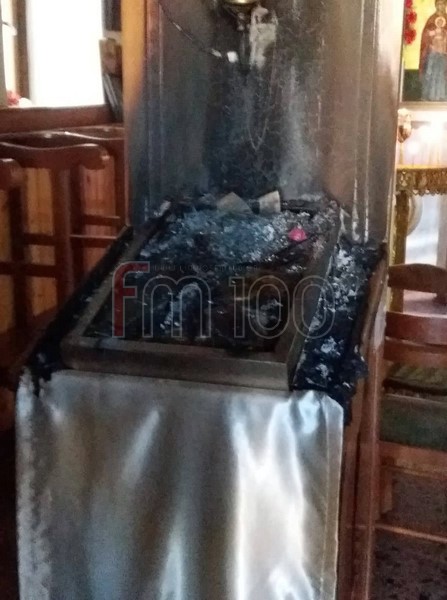 Όπως μας μεταφέρει κάτοικος του χωριού, το πρωί του Σαββάτου, όταν πήγε για το καθιερωμένο άναμμα του καντηλιού, αντίκρισε καμένη την εικόνα του Αγίου.