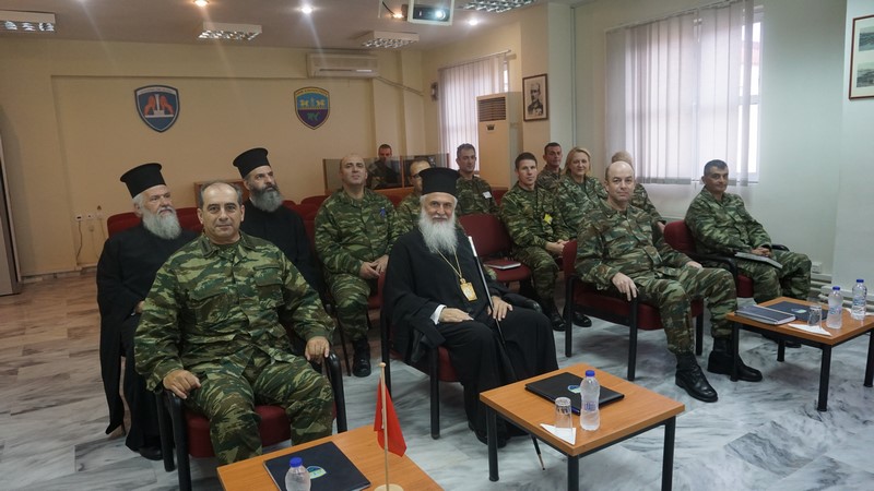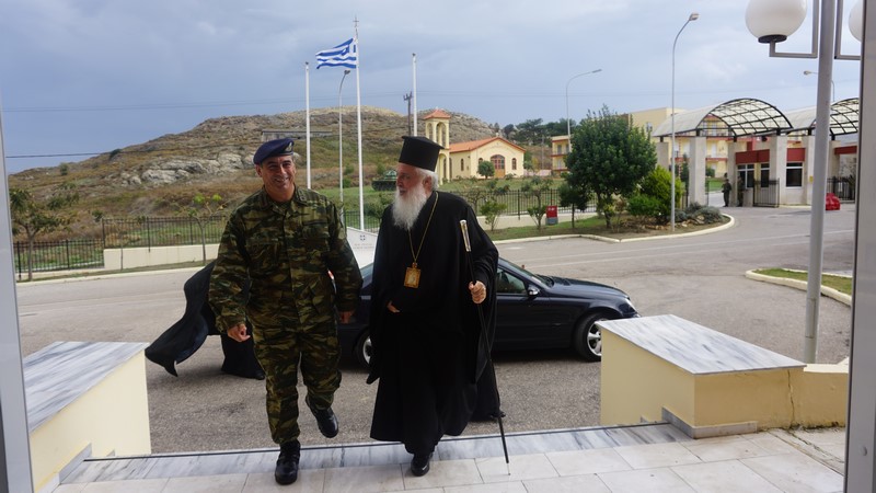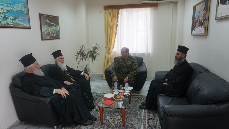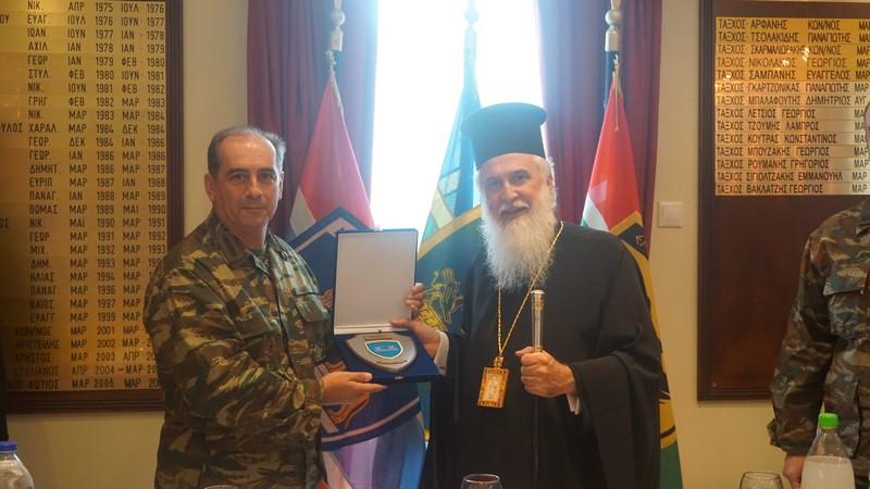 Τον Σεβασμιώτατο υποδέχτηκε ο Διοκητής, Ταξίαρχος Γεώργιος Βακλατζής, ο οποίος συνομίλησε μαζί του ενώ, στο πλαίσιο της επίσκεψης, προσέφερε στον Μητροπολίτη αναμνηστική πλακέτα.