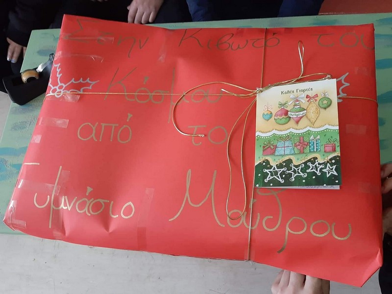 Όπως αναφέρεται σε δελτίο Τύπου που εξέδωσε η Διεύθυνση του σχολείου: «Γλυκά παραμυθένια Χριστούγεννα στα παιδιά της "Κιβωτού του κόσμου" εύχονται οι μαθητές, οι γονείς κι οι εκπαιδευτικοί του Γυμνασίου Μούδρου! Με αφορμή την προτροπή της Κοινότητας του Μούδρου, πακετάραμε σοκολατένιες λιχουδιές, μπισκοτένιες απολαύσεις και παραμύθια της γιαγιάς και τα ταξιδεύουμε στην "Κιβωτό" και στον πατέρα Αντώνιο με τις θερμότερες ευχές μας. Ας μην ξεχνάμε ότι αύριο είναι η Παγκόσμια Ημέρα Παιδιού. Όλα τα παιδιά έχουν δικαίωμα στη χαρά. Τα δέματα παραδώσαμε στον Πρόεδρο της Κοινότητας, κ. Γρατσώνη. Ευχαριστούμε τους γονείς για τη σημαντική συμβολή τους. Ευτυχία κι αγάπη στα σπίτια όλων μας!».