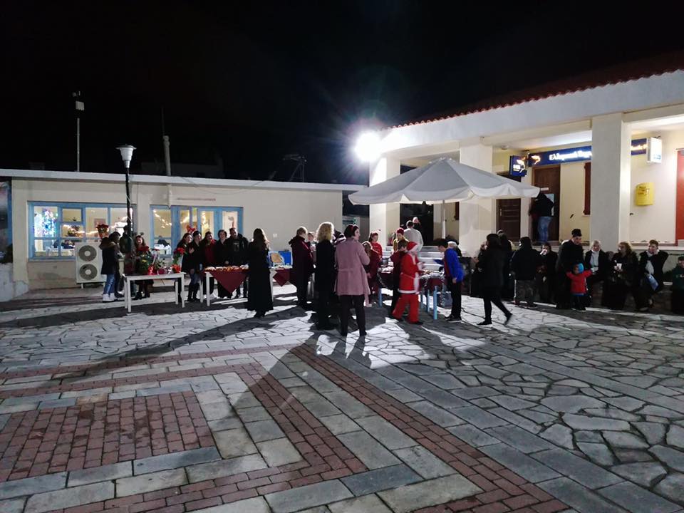 Εχθές, σε γιορτινό κλίμα πραγματοποιήθηκε η φωταγώγηση του χριστουγεννιάτικου δέντρου στην πλατεία δημαρχείου με χριστουγεννιάτικα τραγούδια από την χορωδία των μαθητών του Νηπιαγωγείου, Δημοτικού, Γυμνασίου και Λυκείου Αγίου Ευστρατίου, που διηύθυνε η δασκάλα του ολοήμερου Δημοτικού σχολείου, κυρία Πελαγία Καραβίδα.