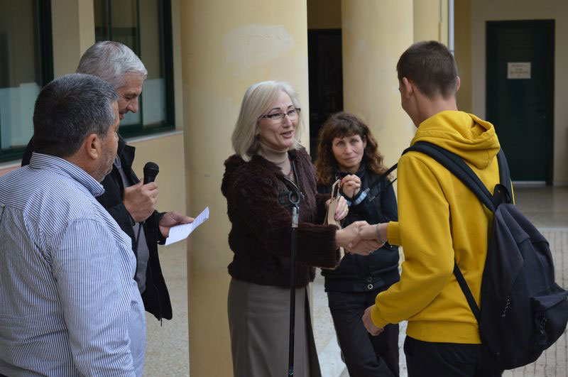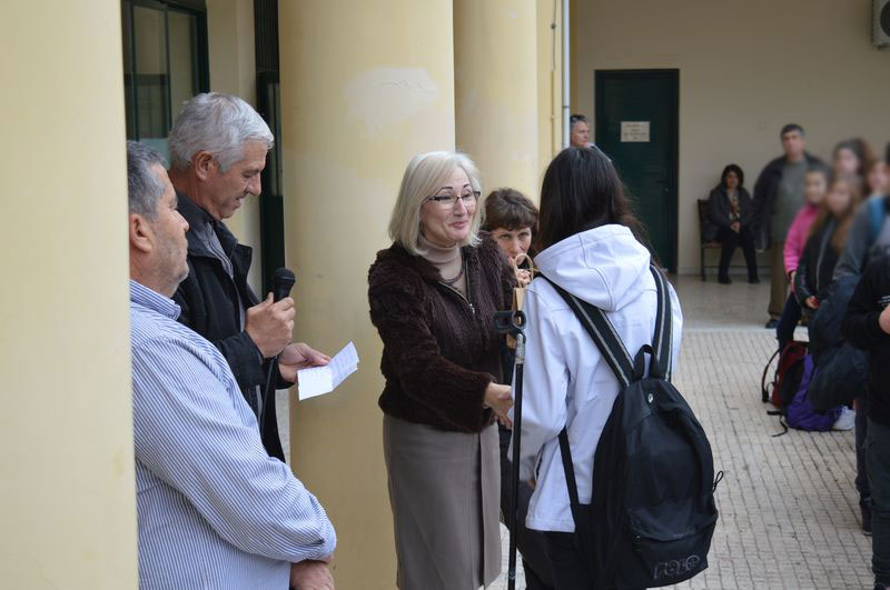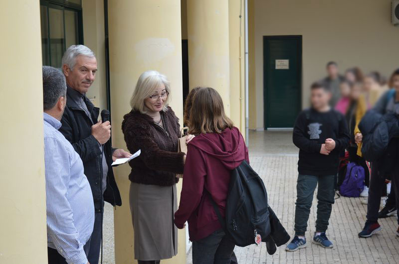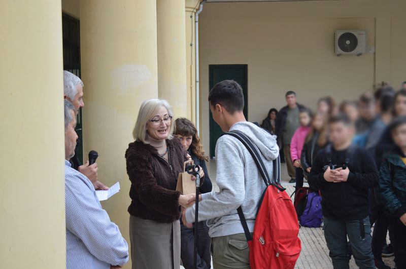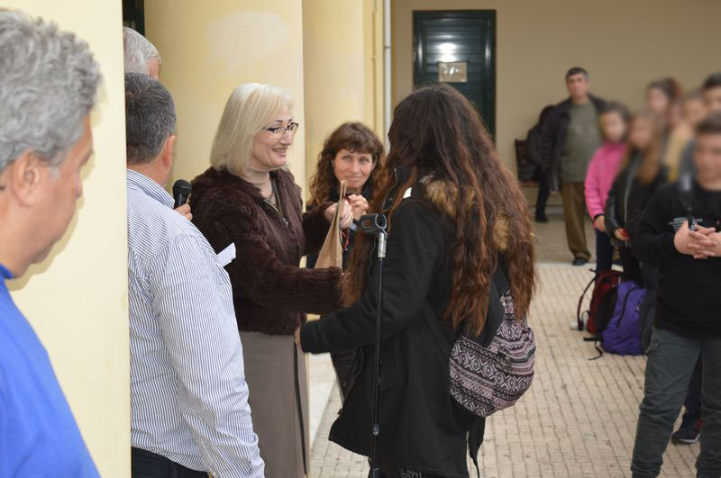 Η βράβευση έγινε από τον αντιδήμαρχο κ. Ποντίκα και την Πρόεδρο της Κοινότητας Μύρινας κ. Μοσχάκη.