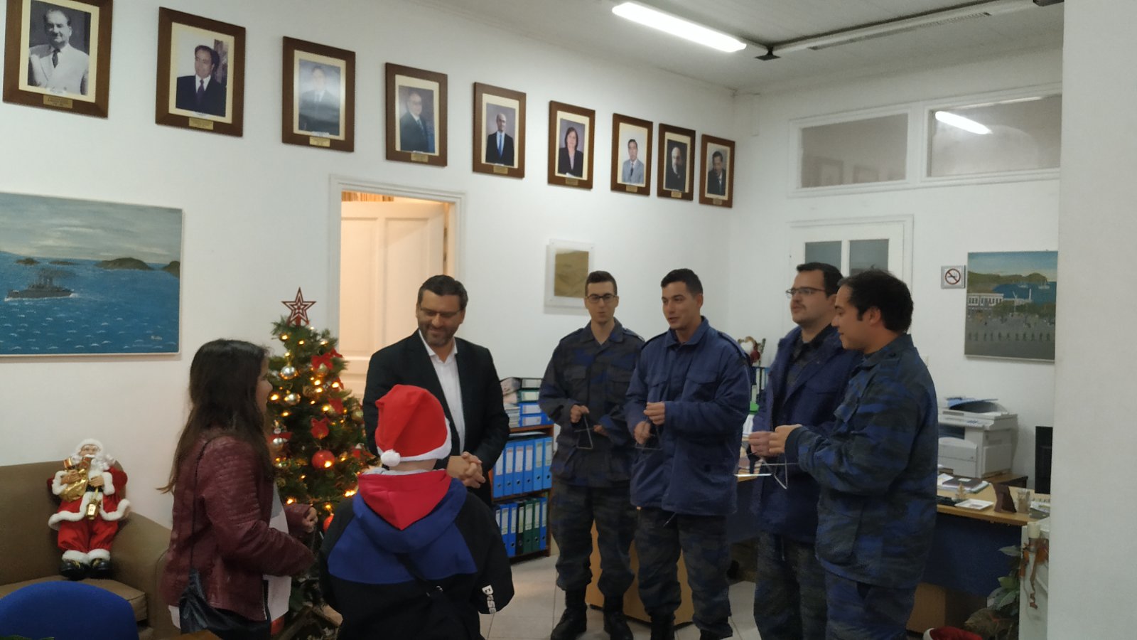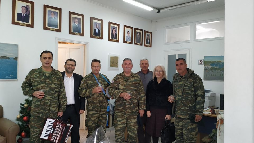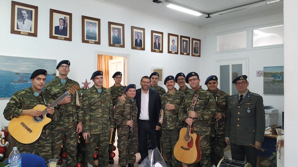 Τόσο η Φιλαρμονική όσο και οι ομάδες των Ενόπλων Δυνάμεων, έψαλλαν τα κάλαντα στο Δήμαρχο και αυτός με τη σειρά του ανταπέδωσε με ευχές.